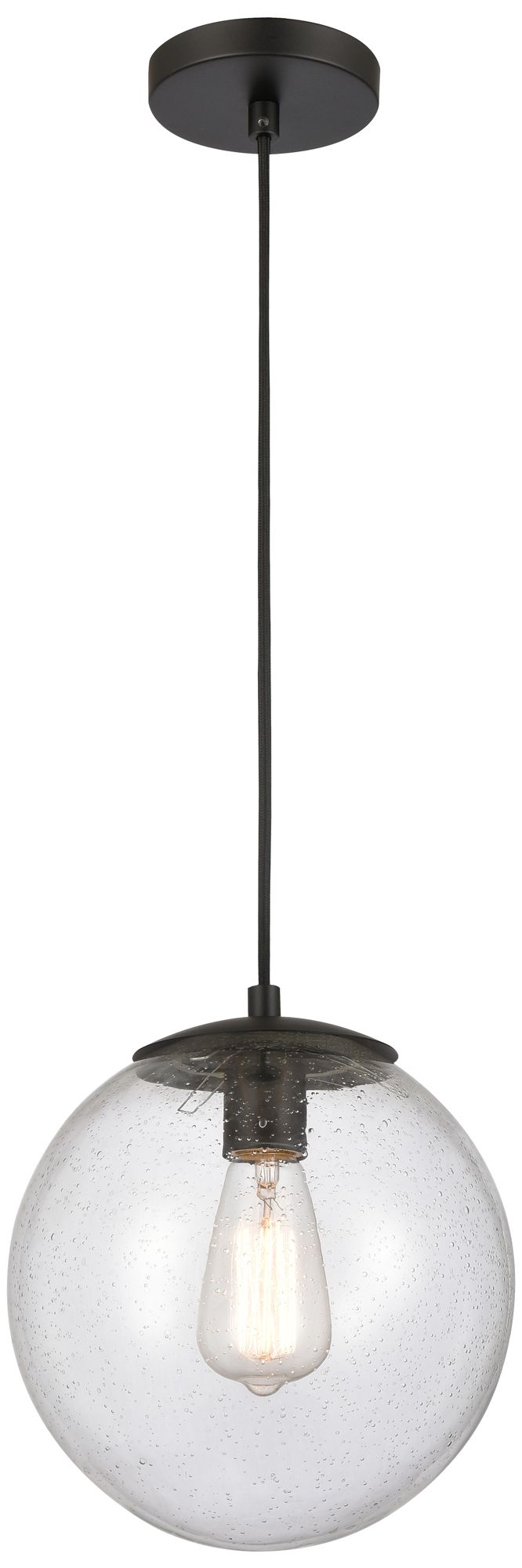 Auralume Tolland 10" Matte Black Mini Pendant w/ Seedy Shade