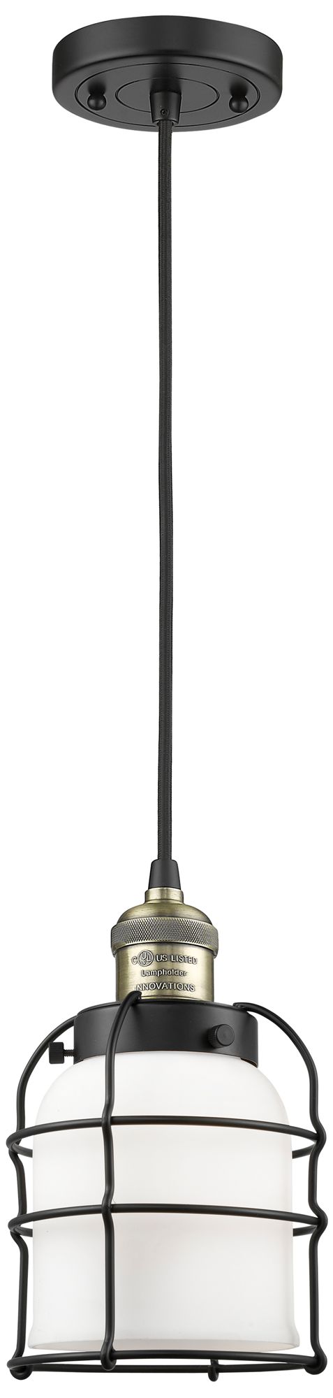 Franklin Bell Cage 6" Black Brass Corded Mini Pendant w/ White Shade