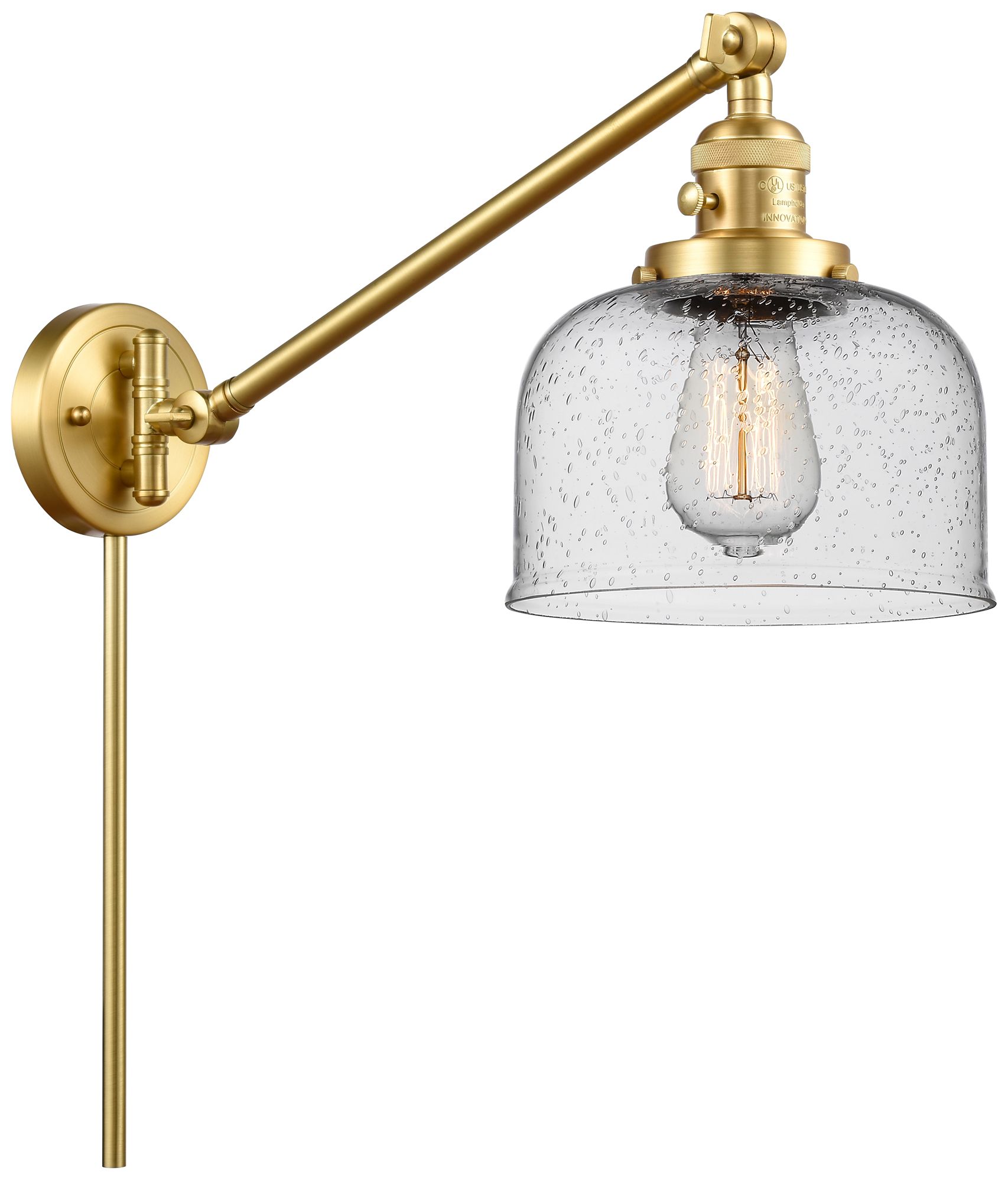 Franklin Restoration Bell 8" Satin Gold Swing Arm w/ Seedy Shade