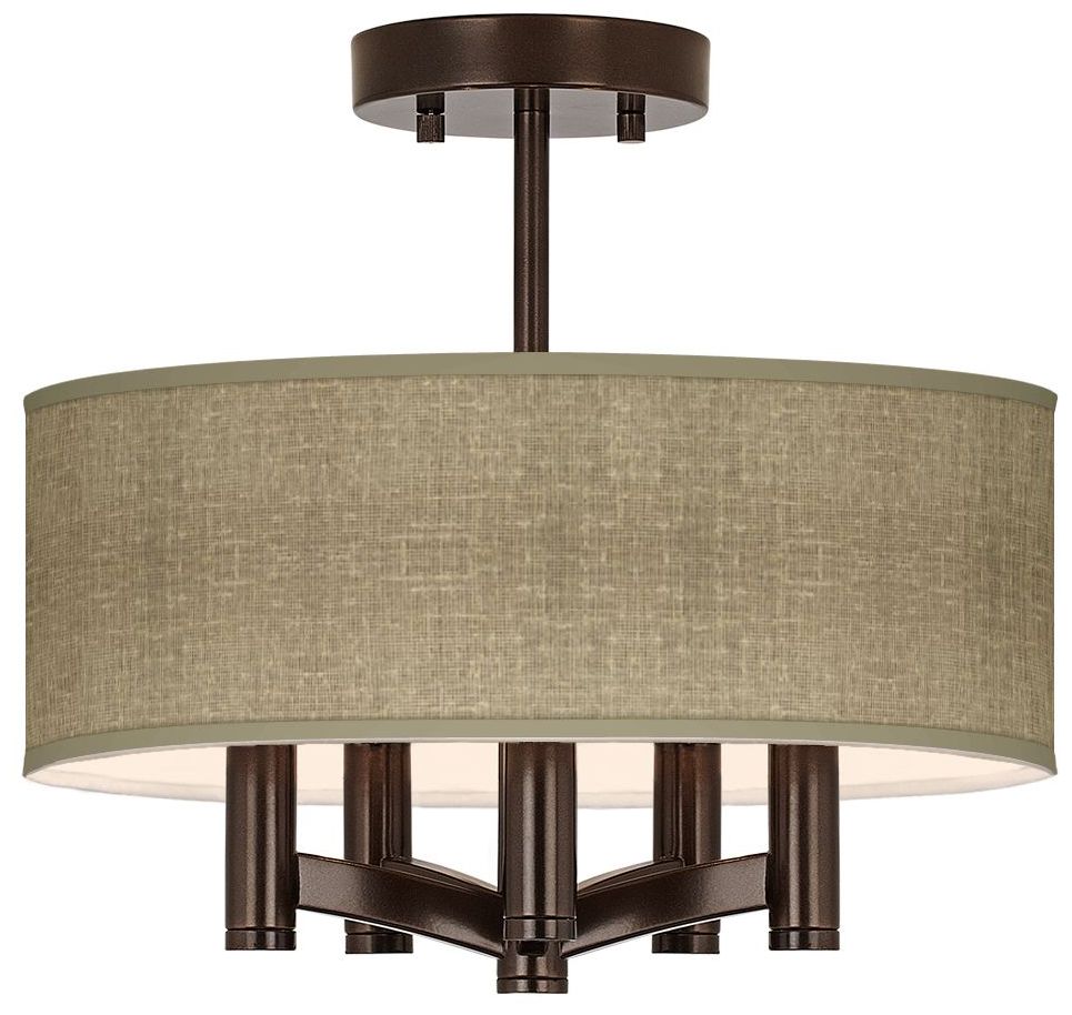 Burlap Print Ava 14" Wide 5-Light Bronze Semi-Flushmount Ceiling Light