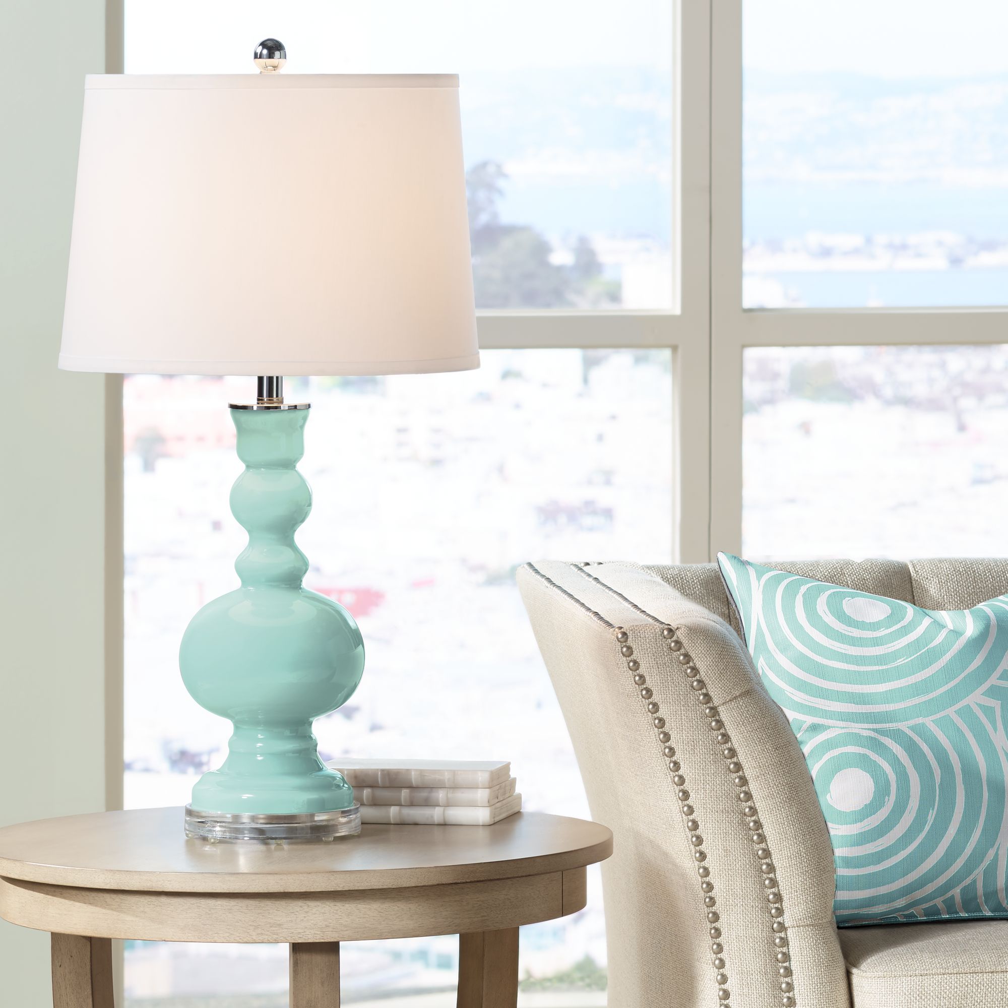 Color Plus Apothecary 30" White Shade Cay Blue Table Lamp