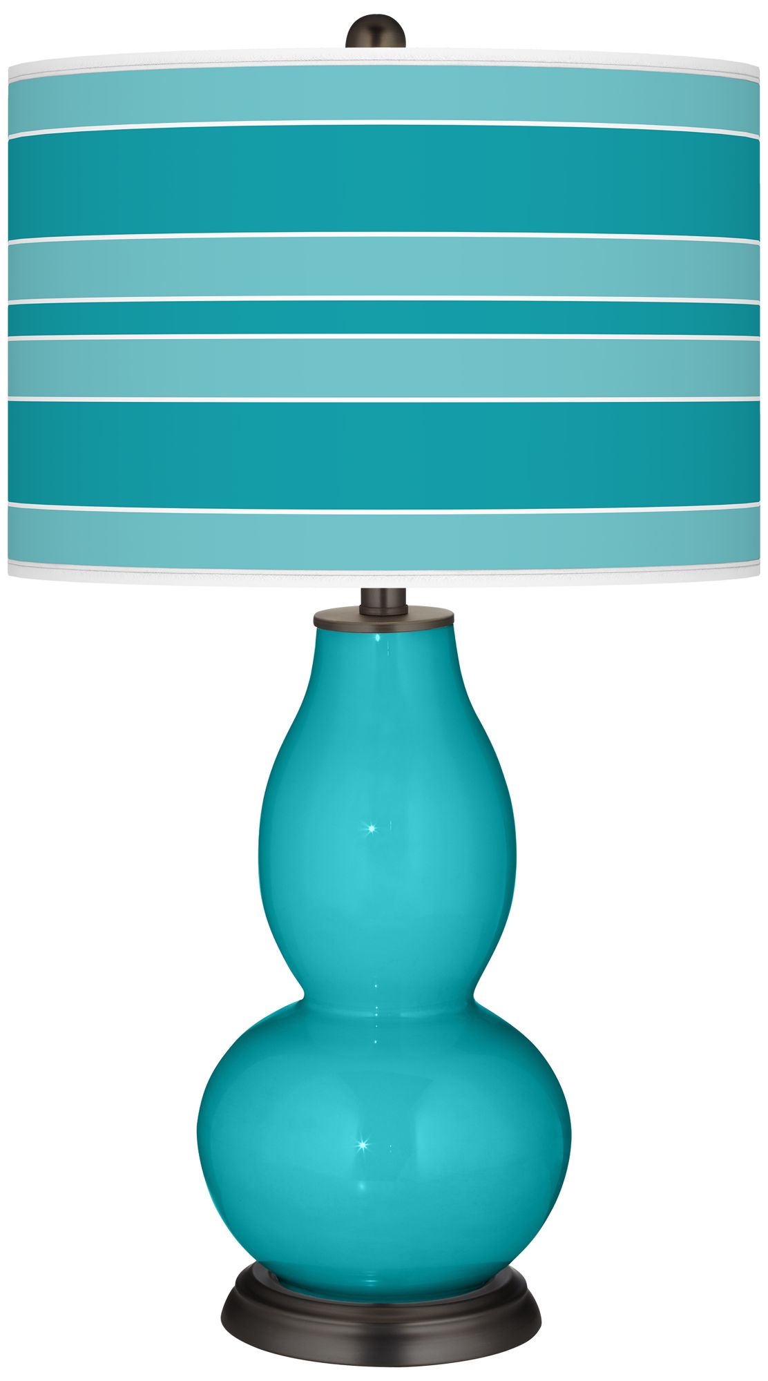 Color Plus Double Gourd 29 1/2" Bold Stripe Surfer Blue Table Lamp