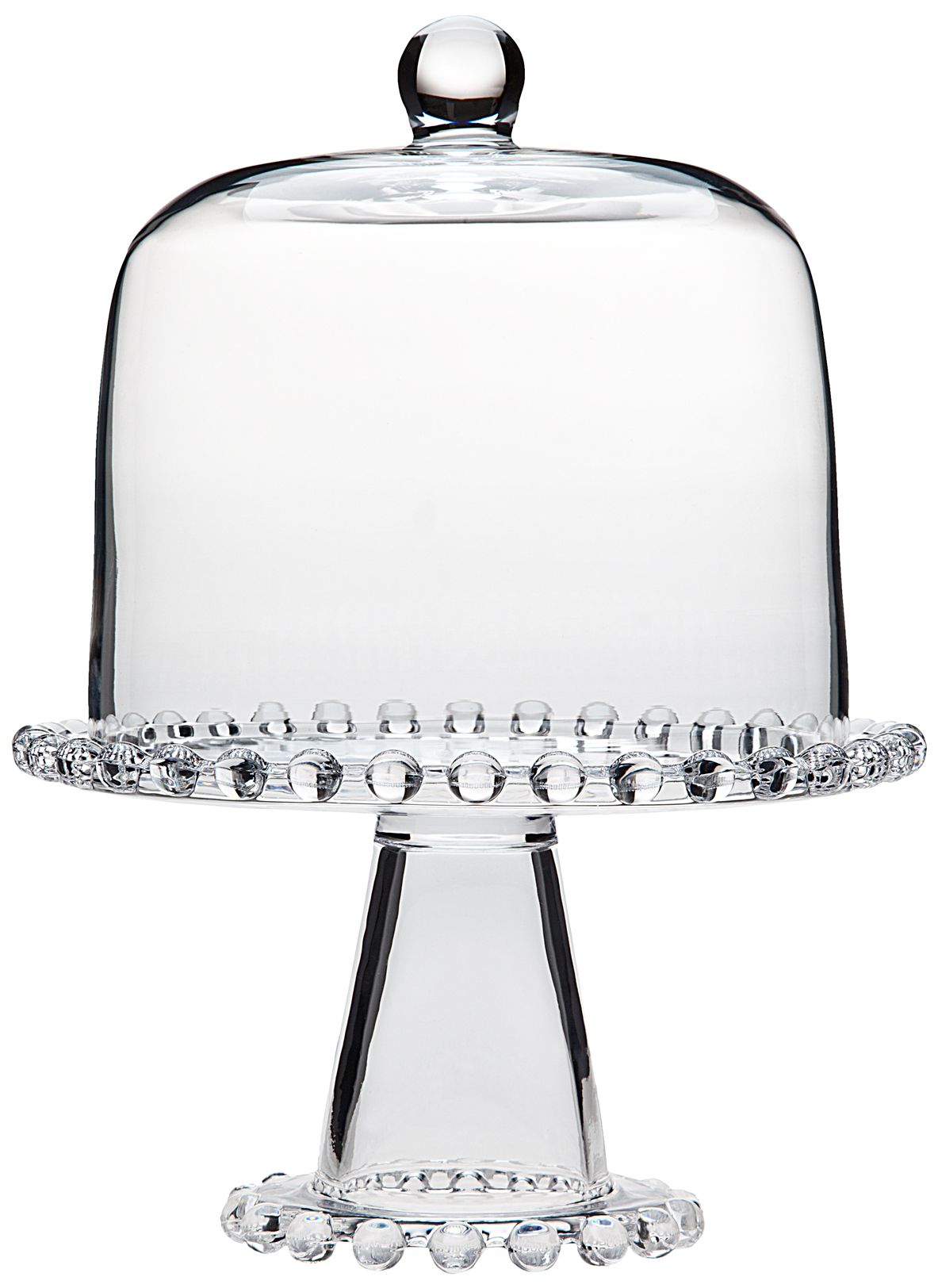 Godinger Chesterfield Beaded 8" Round Domed Glass Cake Plate