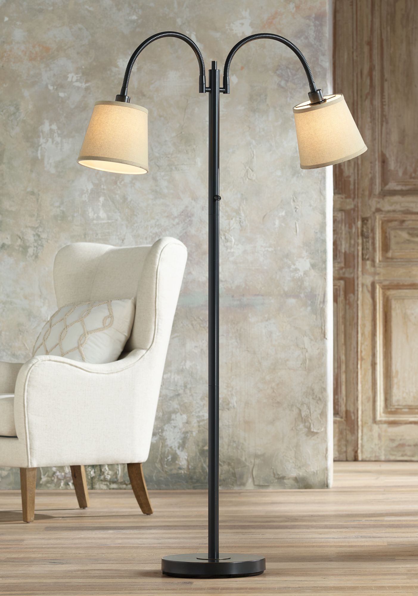 Cal Lighting Clark 65" Bronze Double Gooseneck Arm Floor Lamp