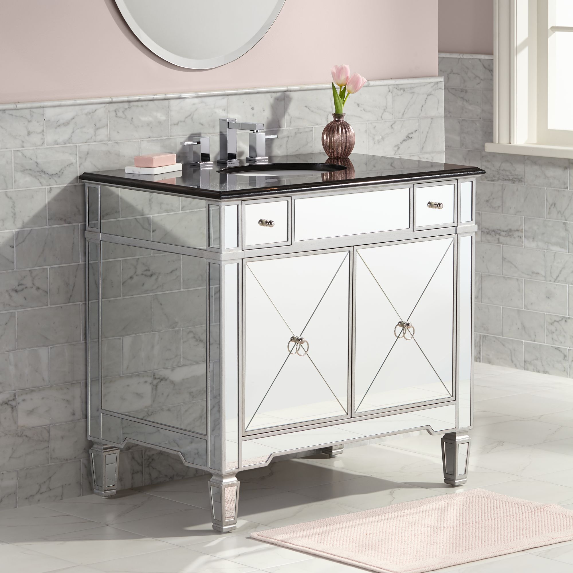 Mackenzie Mirrored and Granite 36"W Bathroom Sink Vanity