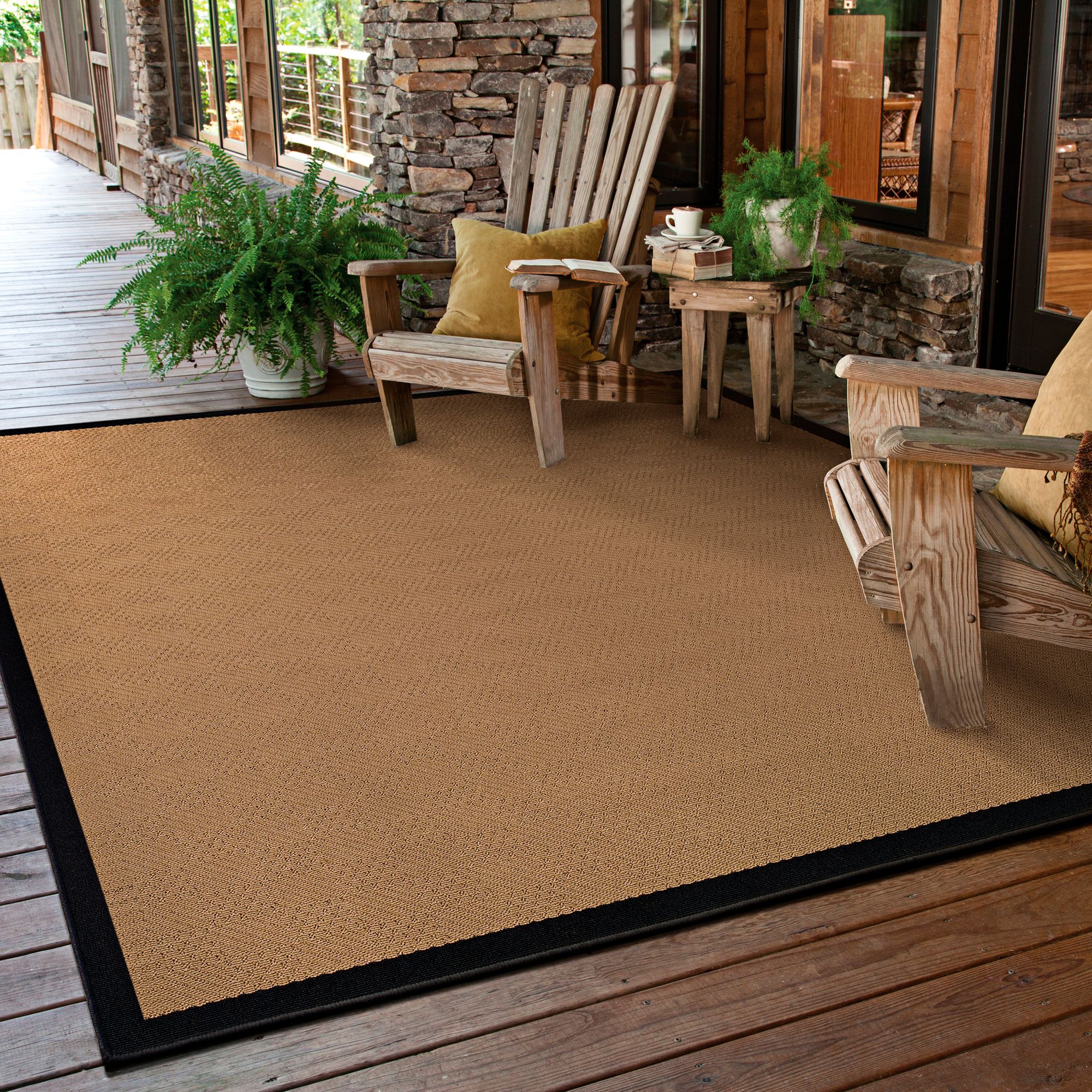 Lanai 525X5 5'3"x7'6" Beige and Black Outdoor Area Rug