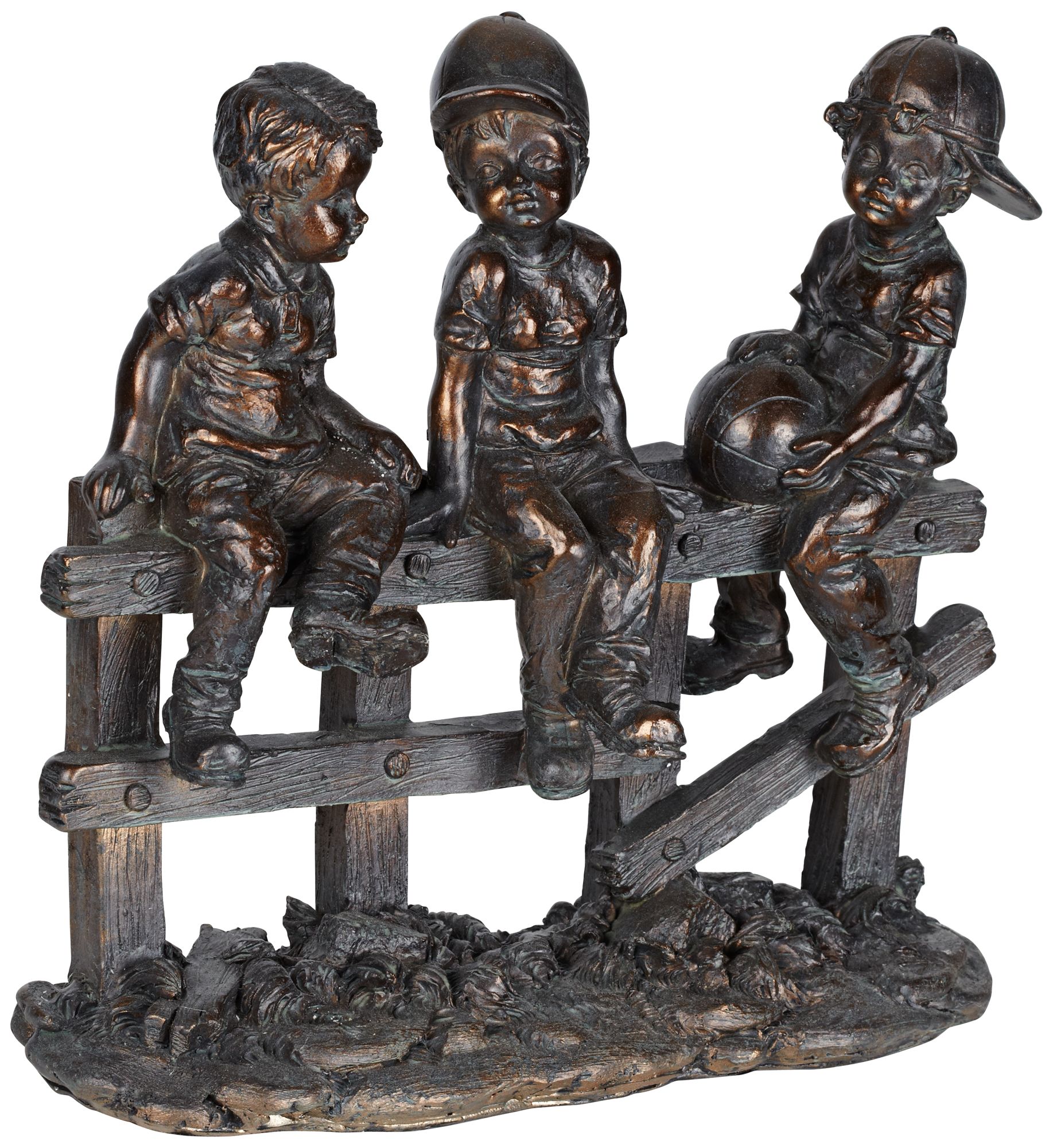 Kids Sittin' on Fence 10" Wide Bronze Sculpture