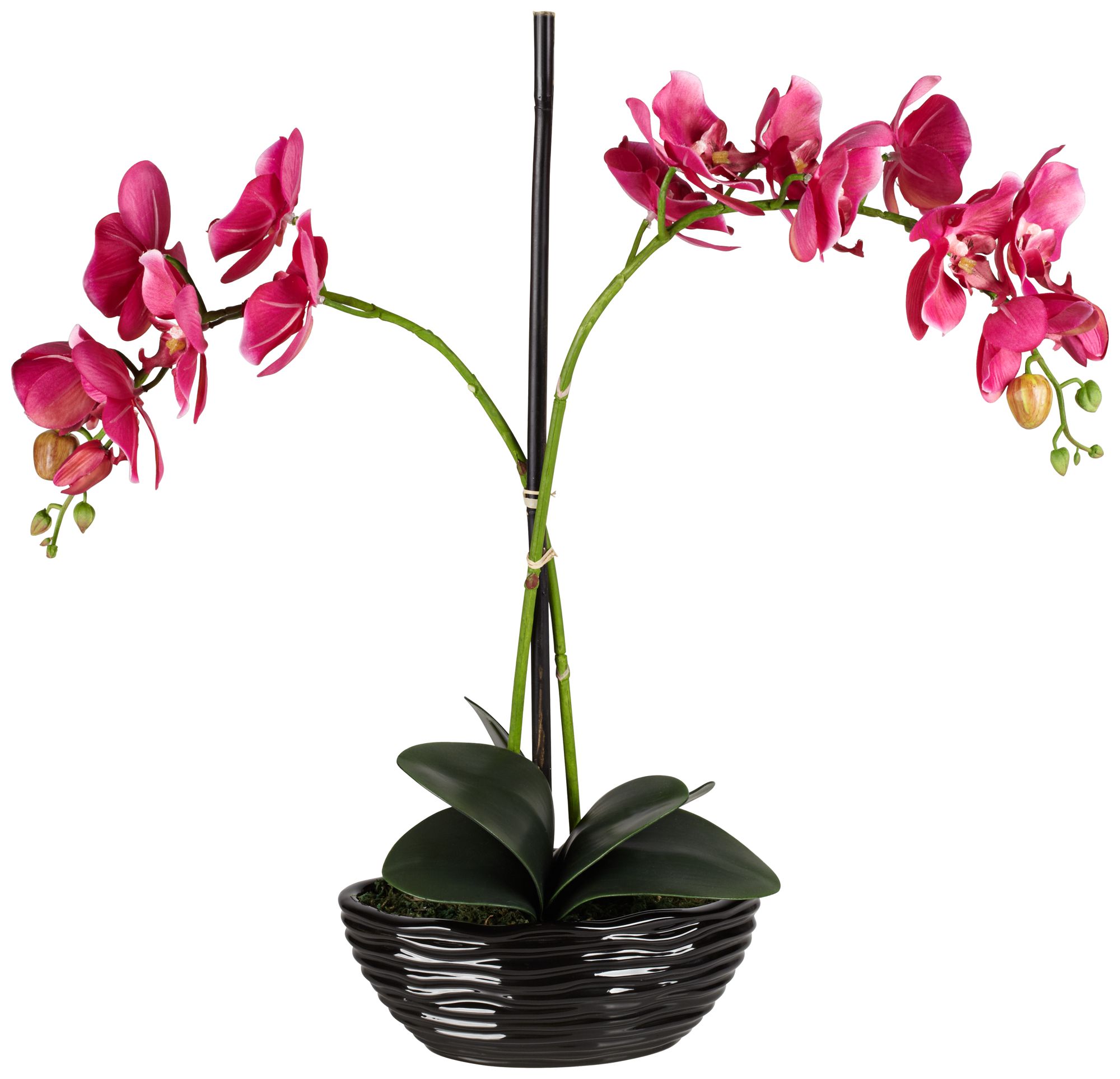 Single Stem 20" High Single Purple Faux Orchids in Black Pot