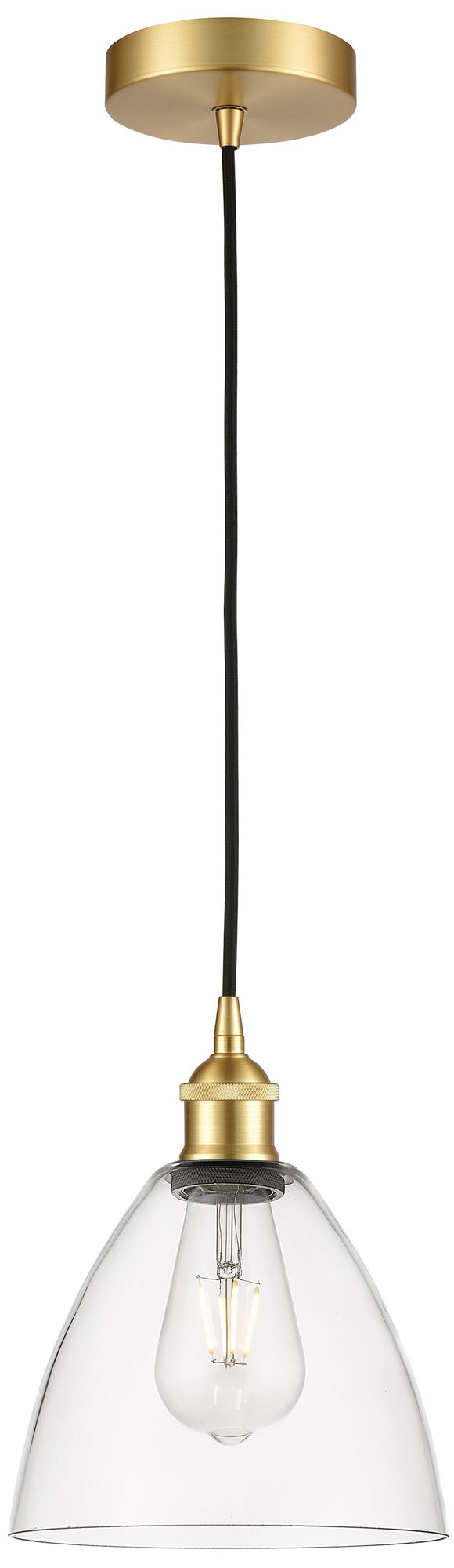 Edison Dome 8" Satin Gold Cord Hung Mini Pendant w/ Clear Shade