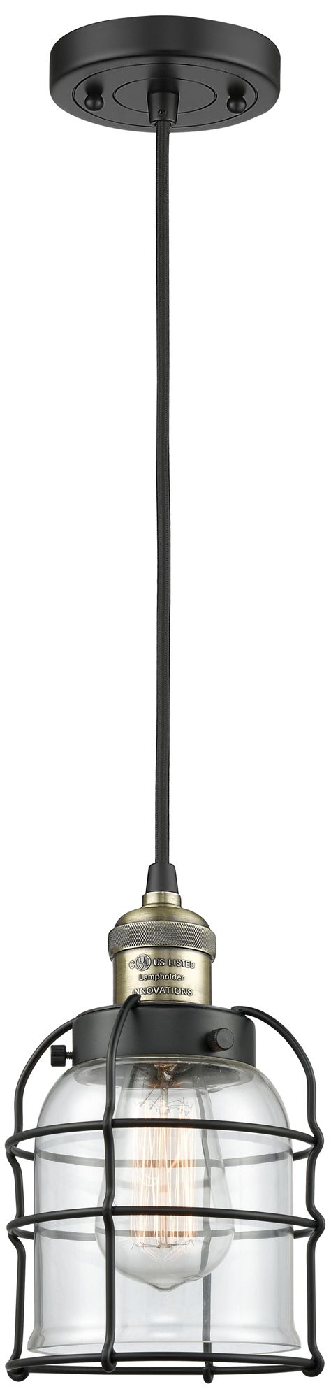 Franklin Bell Cage 6" Black Brass Corded Mini Pendant w/ Clear Shade
