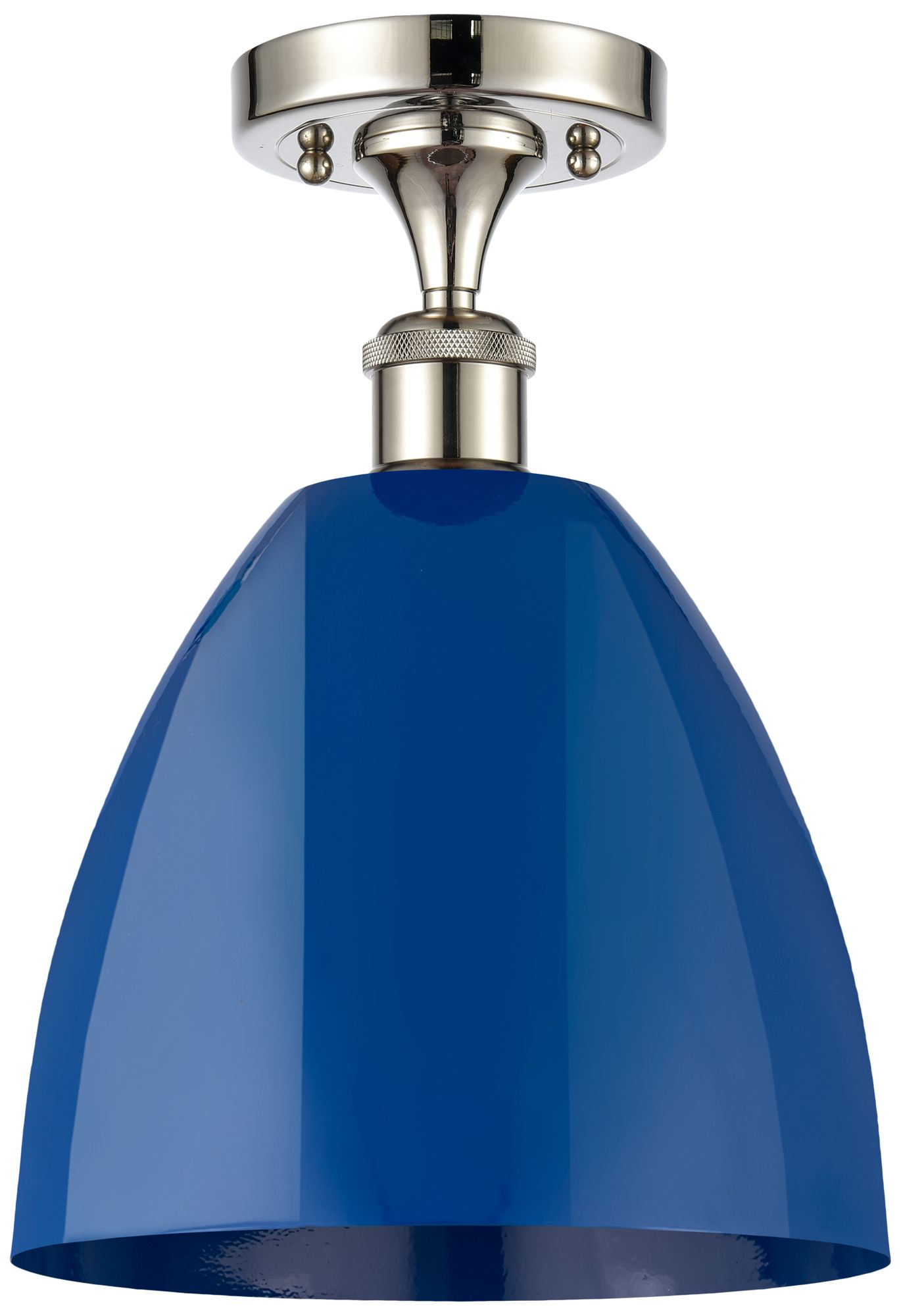 Plymouth Dome 9" Wide Polished Nickel Semi Flush Mount w/ Blue Shade