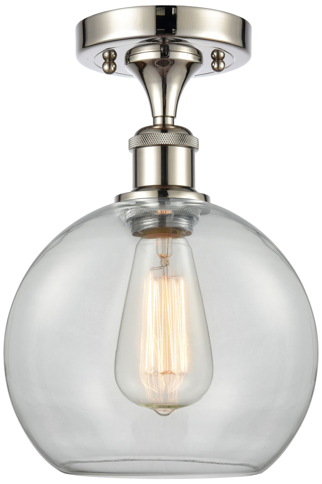 Ballston Athens 8" Semi-Flush Mount - Polished Nickel - Clear Shade