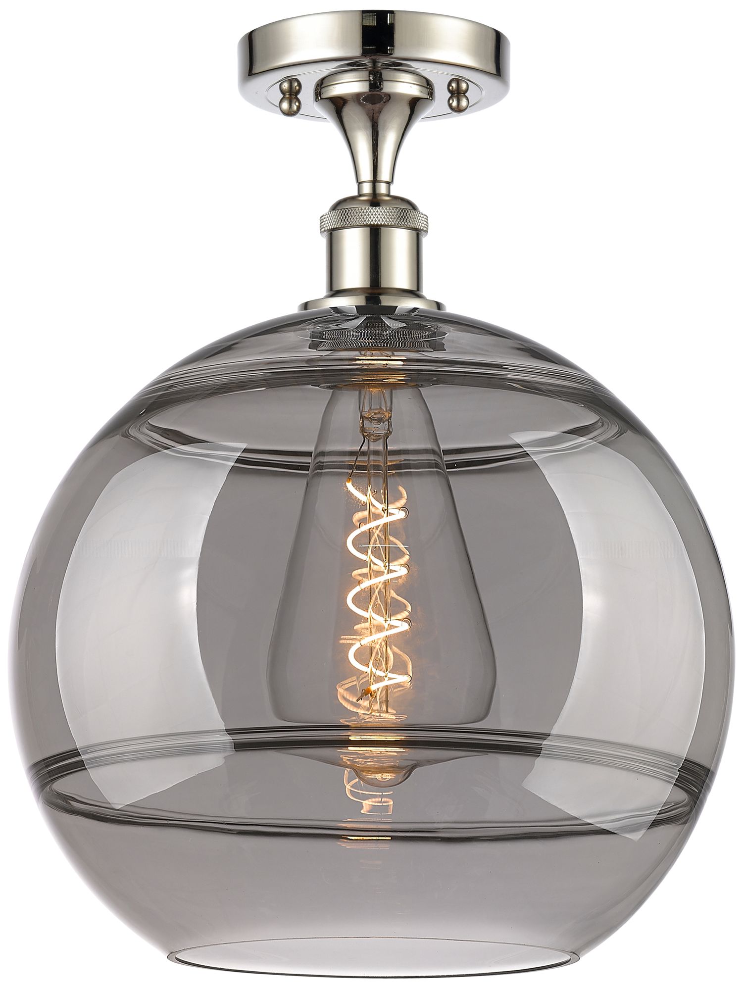 Ballston Rochester 12"W Polished Nickel Semi-Flush w/ Light Smoke Shad