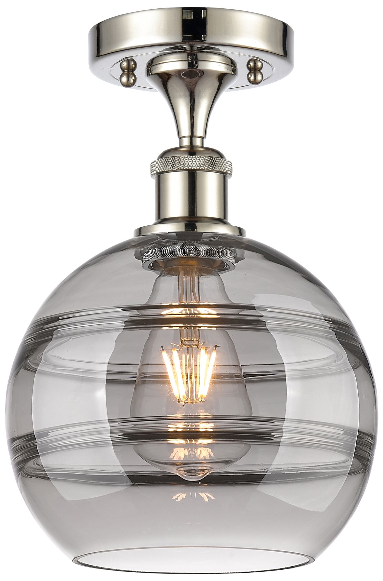 Ballston Rochester 8"W Polished Nickel Semi-Flush w/ Light Smoke Shade
