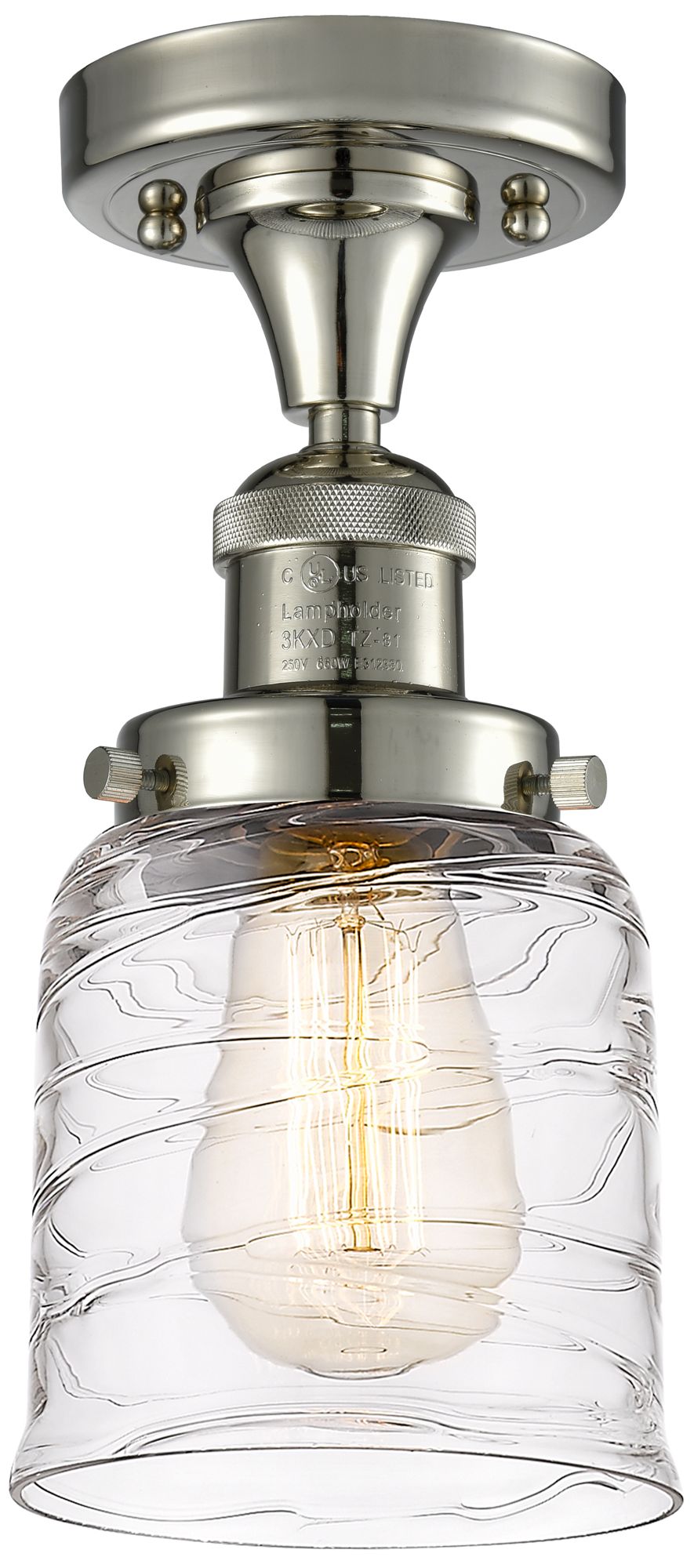 Bell 5" Semi-Flush Mount - Polished Nickel - Deco Swirl Shade