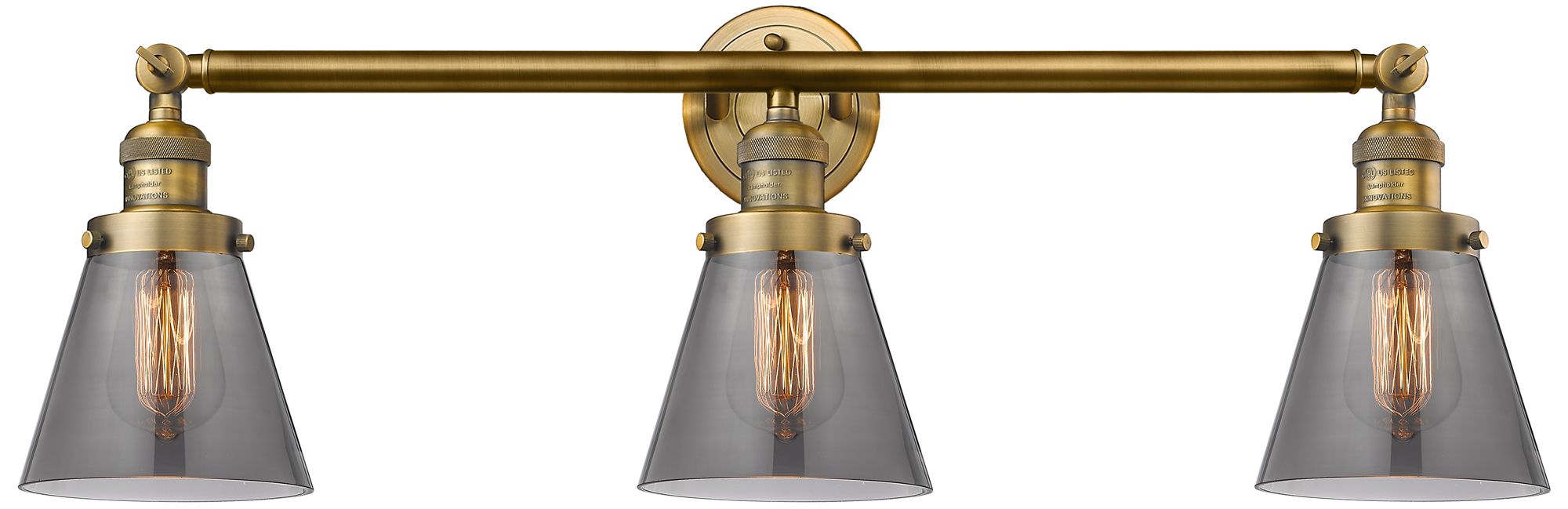 Cone 30" 3-Light Brushed Brass Bath Light w/ Plated Smoke Shade