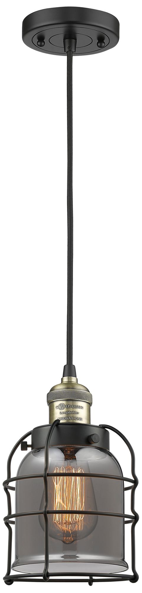 Franklin Bell Cage 6" Black Brass Corded Mini Pendant w/ Smoke Shade