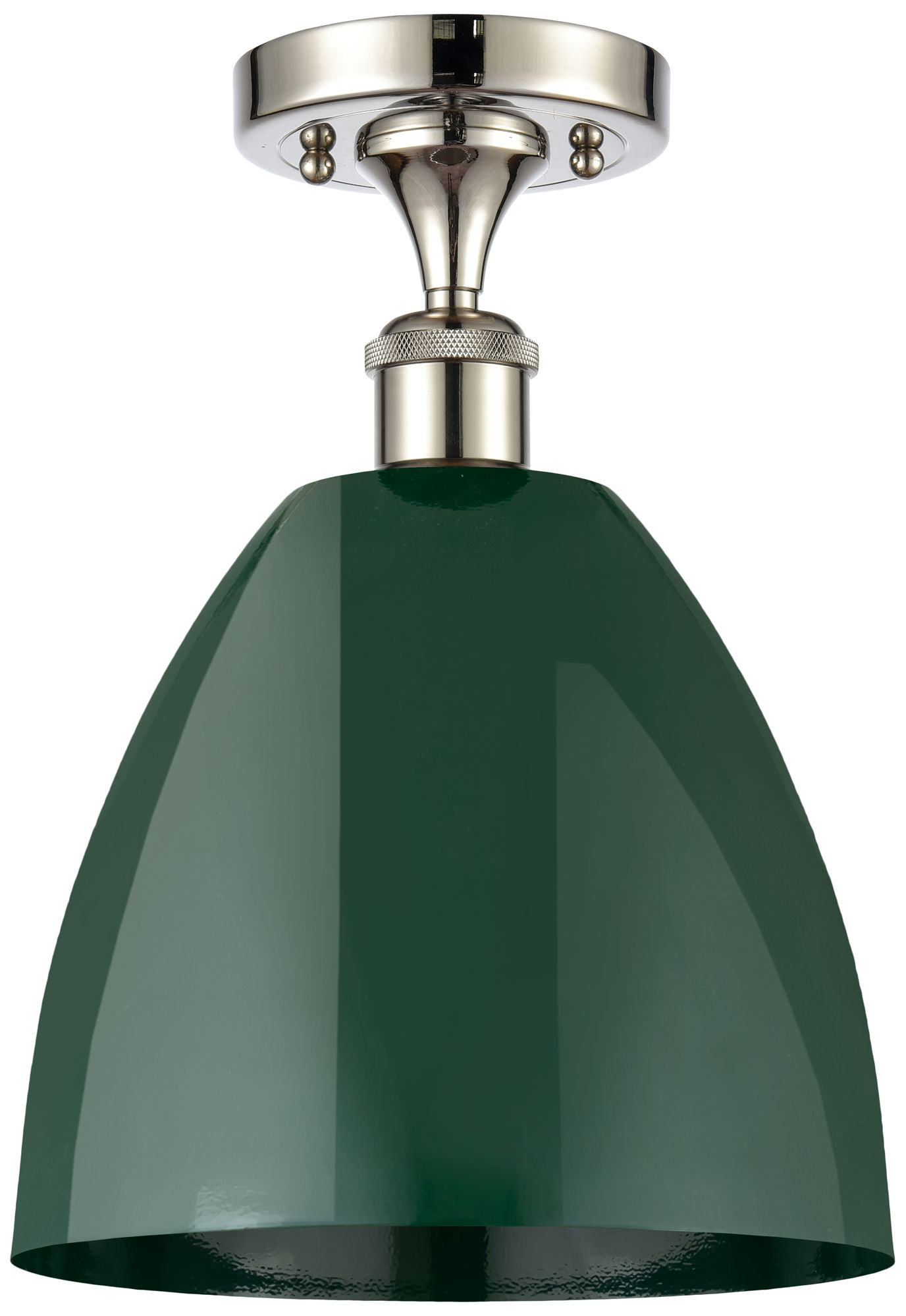 Plymouth Dome 9" Wide Polished Nickel Semi Flush Mount w/ Green Shade