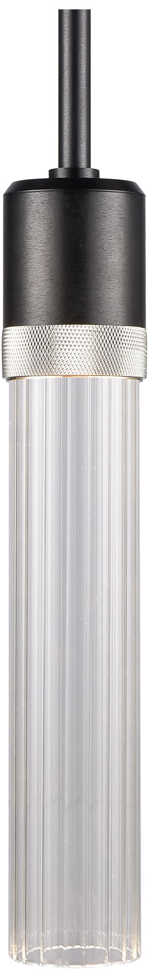 Zigrina 3" LED 3CCT Pendant, 12" Clear Fluted Glass, Black &