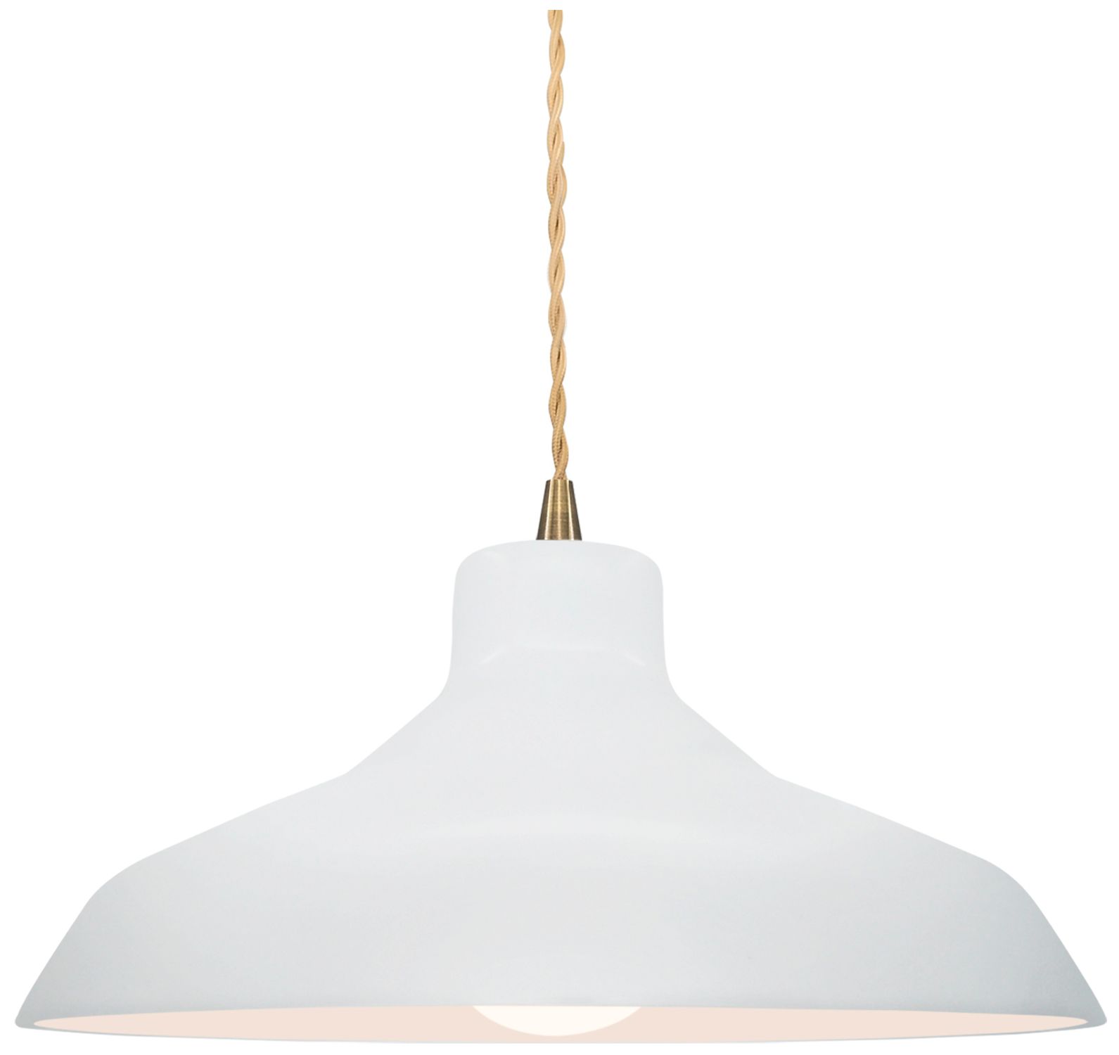 13.5"W Gloss White Sided Frame Antique Brass Loft Beige Twisted Pendan