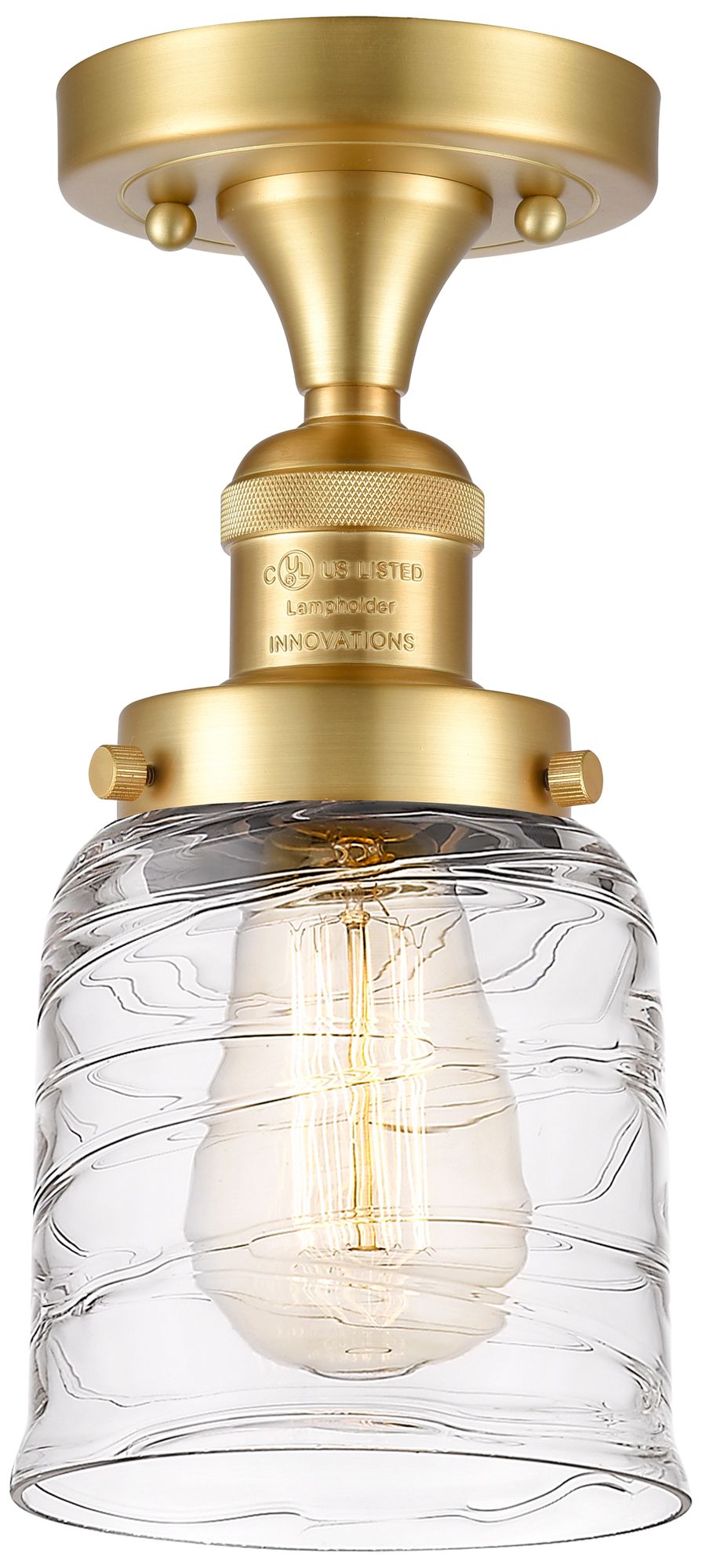 Bell 5" Semi-Flush Mount - Satin Gold - Deco Swirl Shade