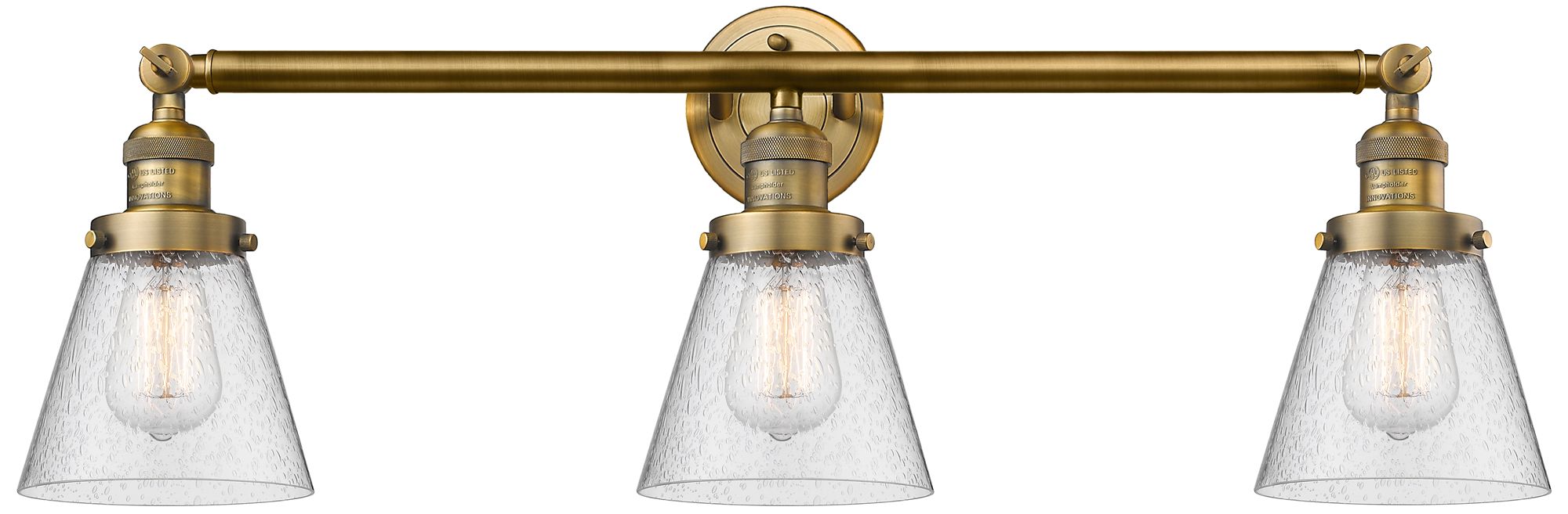 Cone 30" 3-Light Brushed Brass Bath Light w/ Seedy Shade