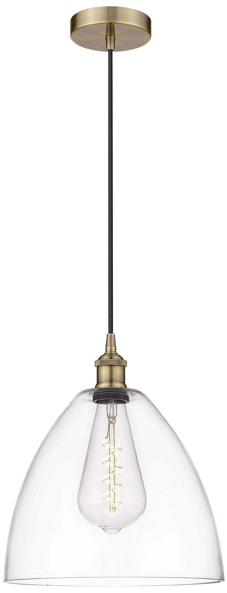 Edison Dome 12" Antique Brass Cord Hung Mini Pendant w/ Clear Shade