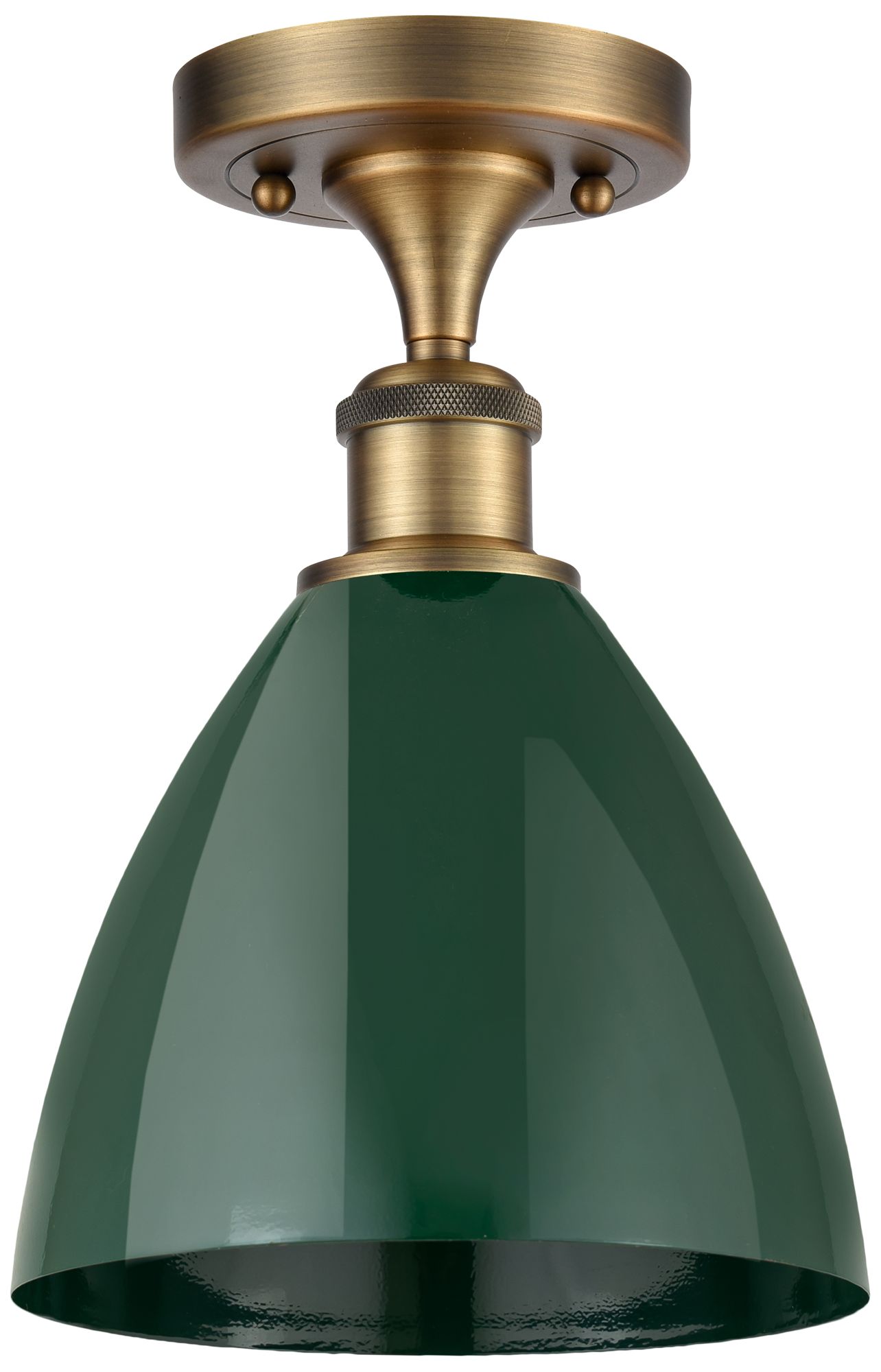 Plymouth Dome 7.5" Wide Brushed Brass Semi Flush Mount w/ Green Shade