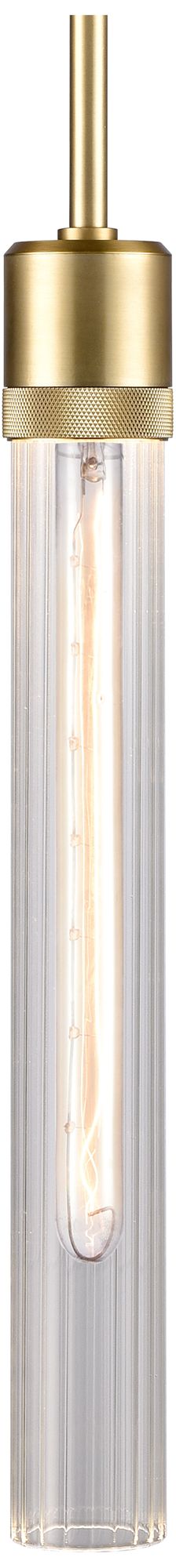 Zigrina 3" E26 Cylindrical Pendant, 18" Fluted Glass and Aged Bra