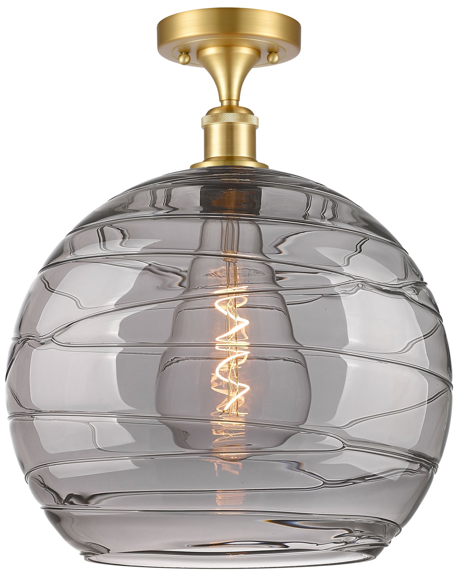 Ballston Athens 13.75"W Satin Gold Semi-Flush Mount w/ Smoke Swirl Sha