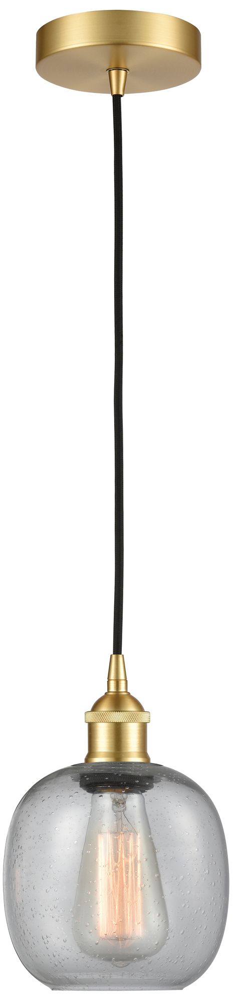 Edison Belfast 6" Satin Gold Cord Hung Mini Pendant w/ Seedy Shade