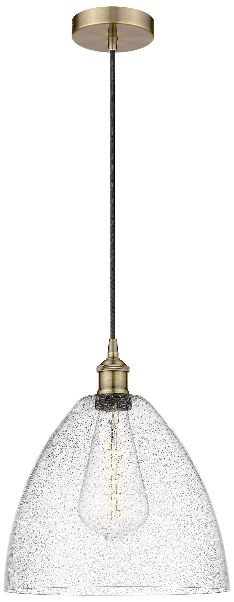Edison Dome 12" Antique Brass Cord Hung Mini Pendant w/ Seedy Shade