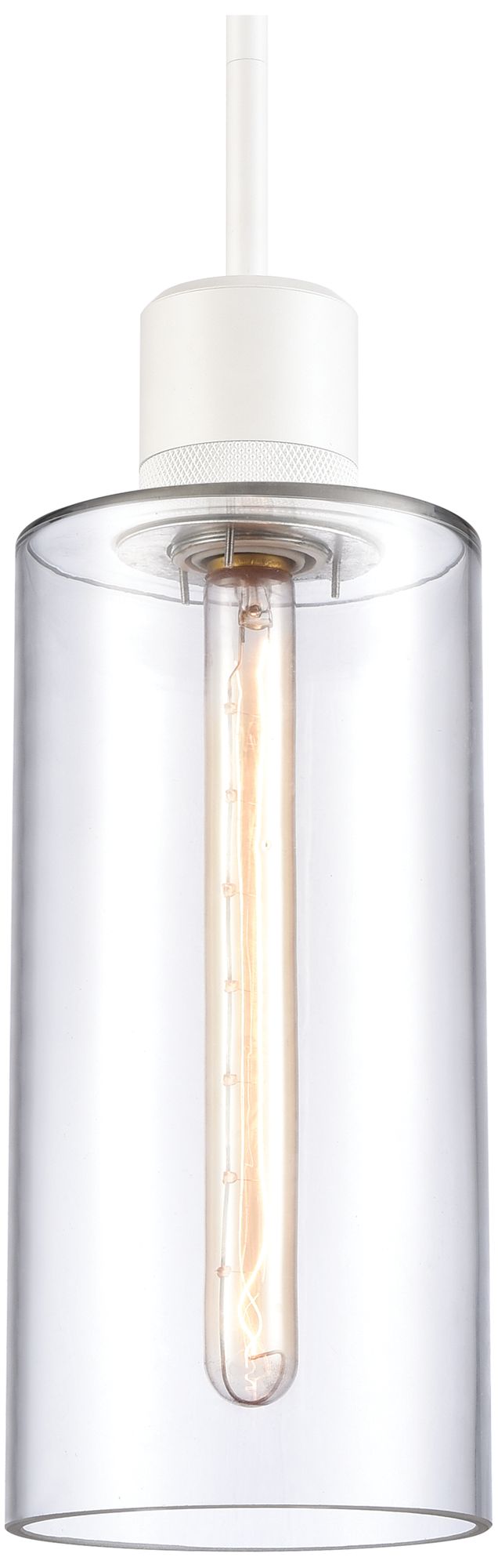 Zigrina 6" E26 Cylindrical Pendant, 12" Clear Glass and White Met