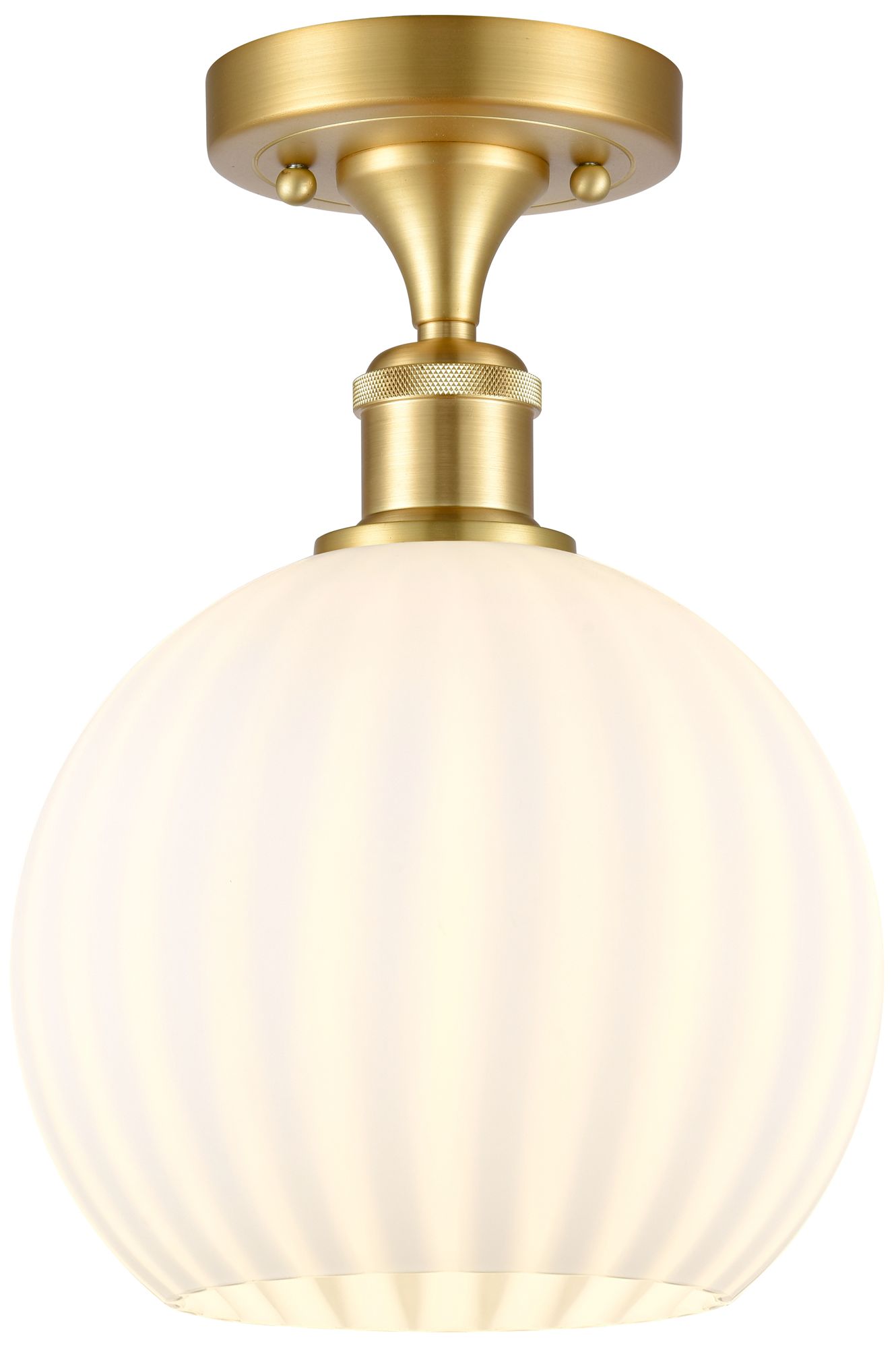Ballston 8" Wide Satin Gold Semi-Flush Mount With White Venetian Shade