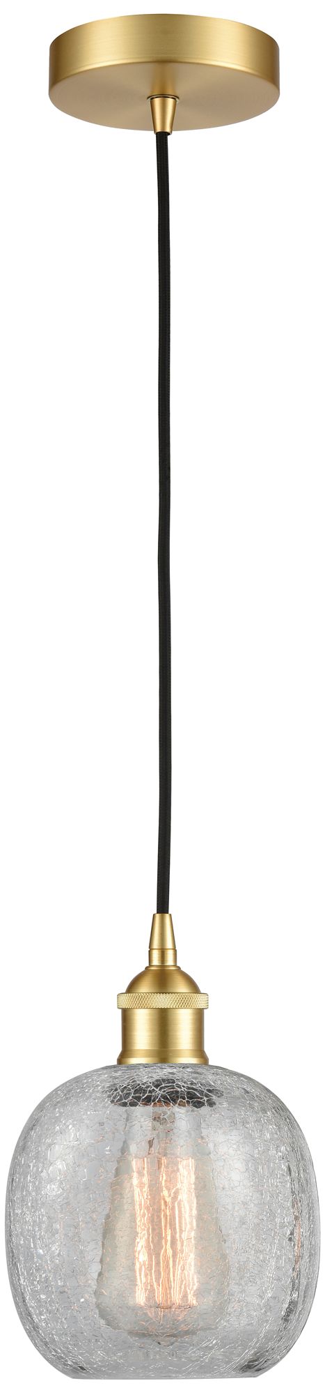 Edison Belfast 6" Satin Gold Cord Hung Mini Pendant w/ Clear Crackle S