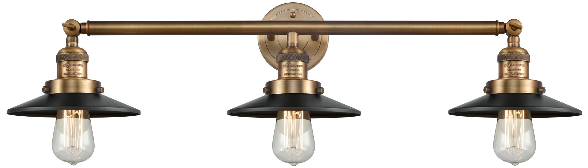 Railroad 32" 3-Light Brushed Brass Bath Light w/ Matte Black Shade