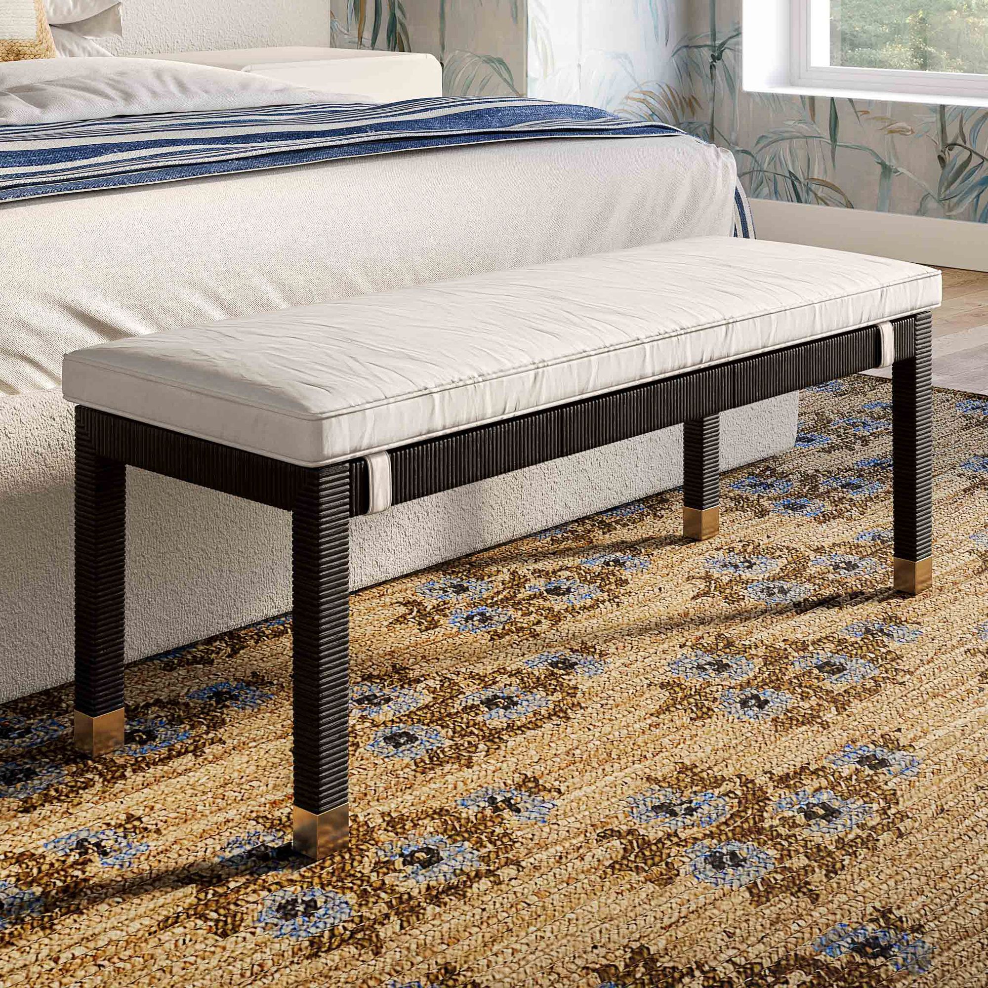 TOV Amara 49 3/4" Wide Charcoal Black Woven Rattan Rectangular Bench