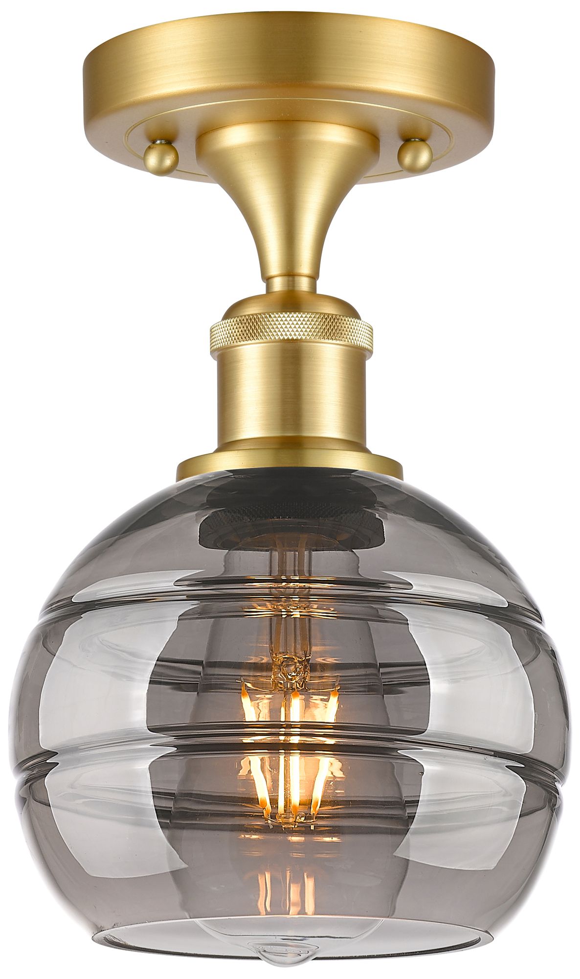 Ballston Rochester 5.88"W Satin Gold Semi-Flush Mount w/ Light Smoke S