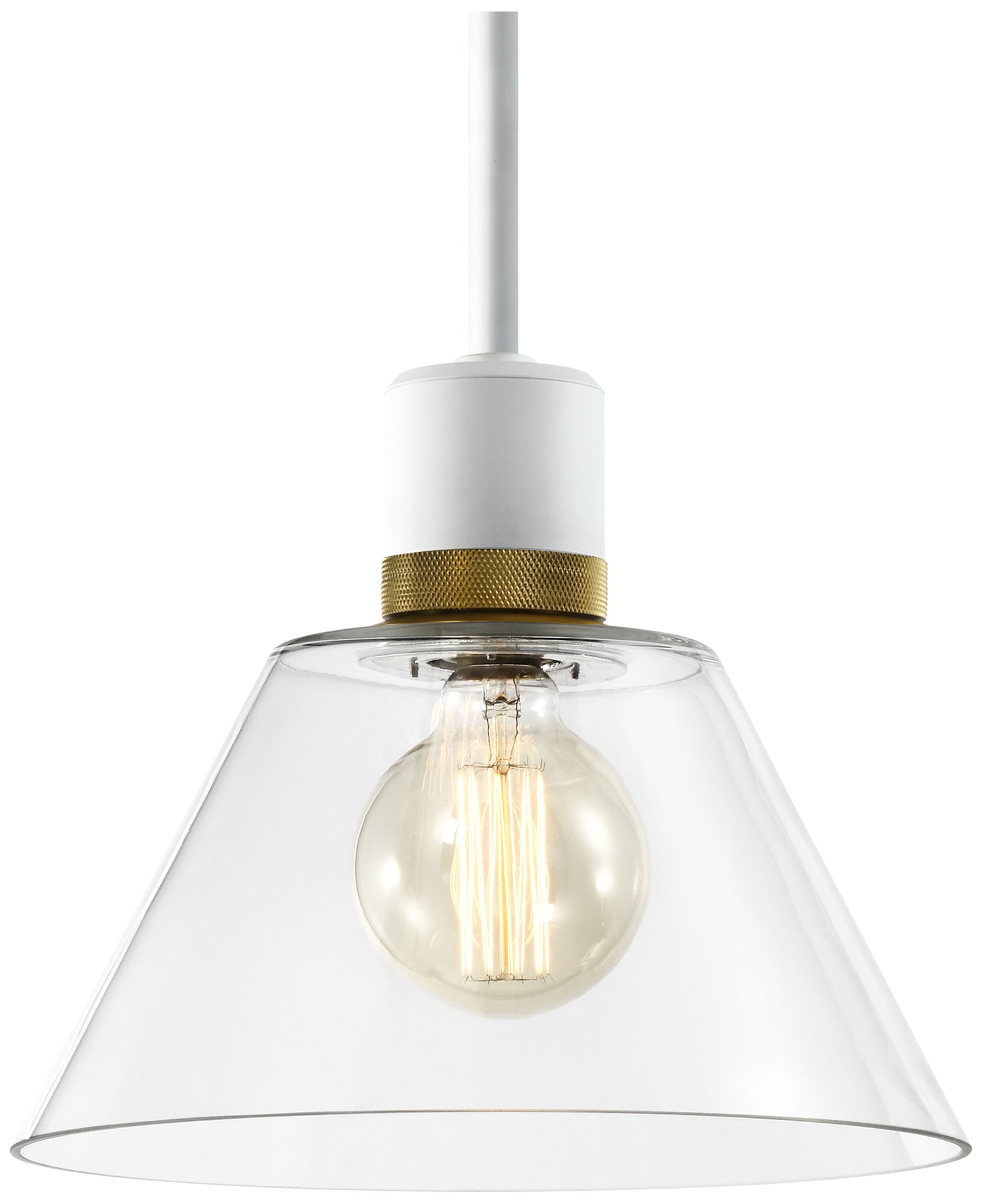 Zigrina 12" E26 Clear Cone Glass Pendant and White with Brass Metal Fi