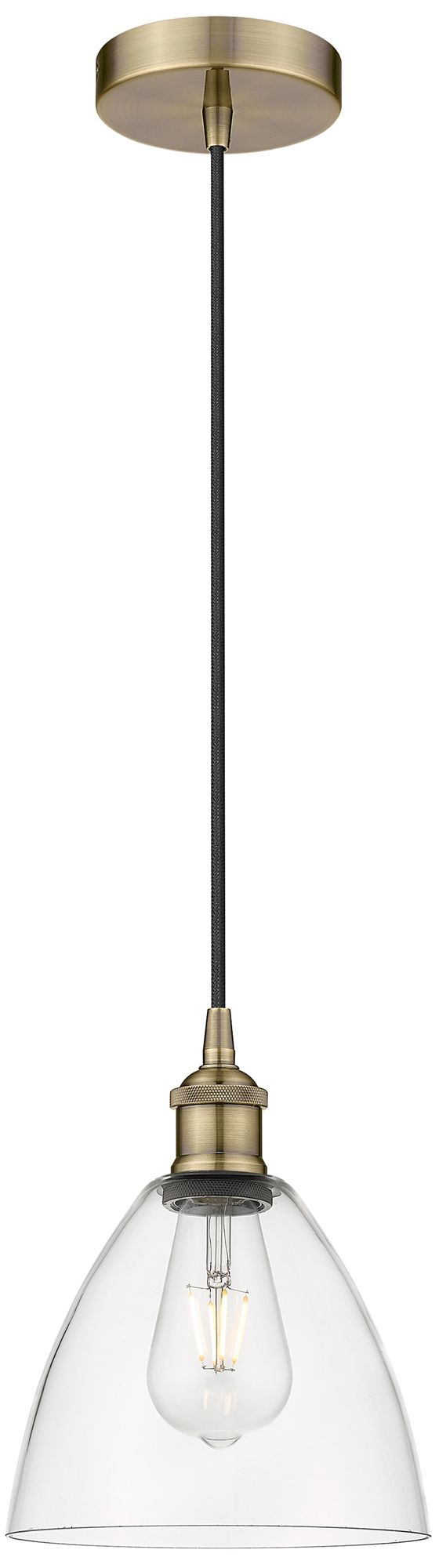 Edison Dome 8" Antique Brass Cord Hung Mini Pendant w/ Clear Shade