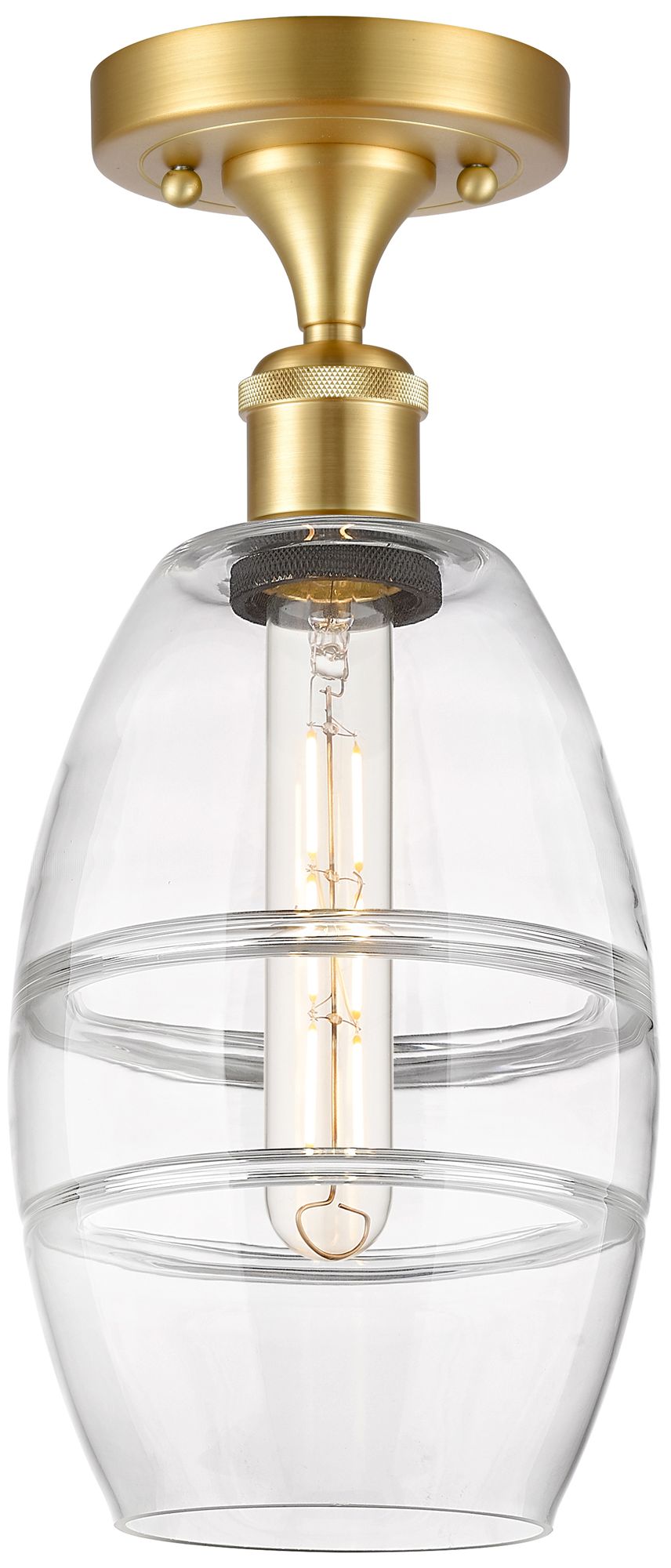 Ballston Vaz 5.88" Wide Satin Gold Semi-Flush Mount With Clear Shade