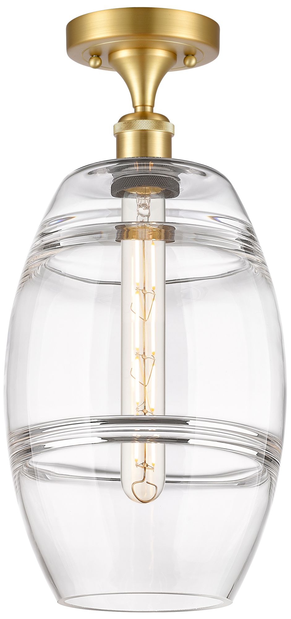 Ballston Vaz 8" Wide Satin Gold Semi-Flush Mount With Clear Shade