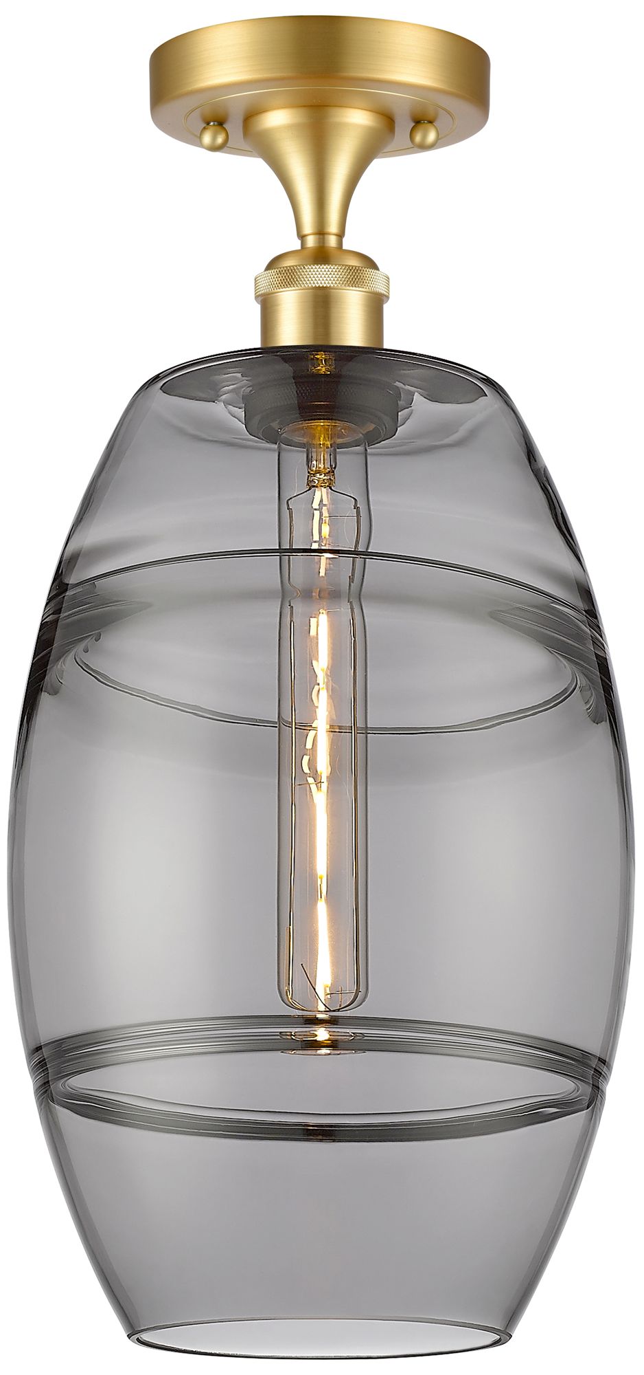 Ballston Vaz 8" Wide Satin Gold Semi-Flush Mount With Light Smoke Shad