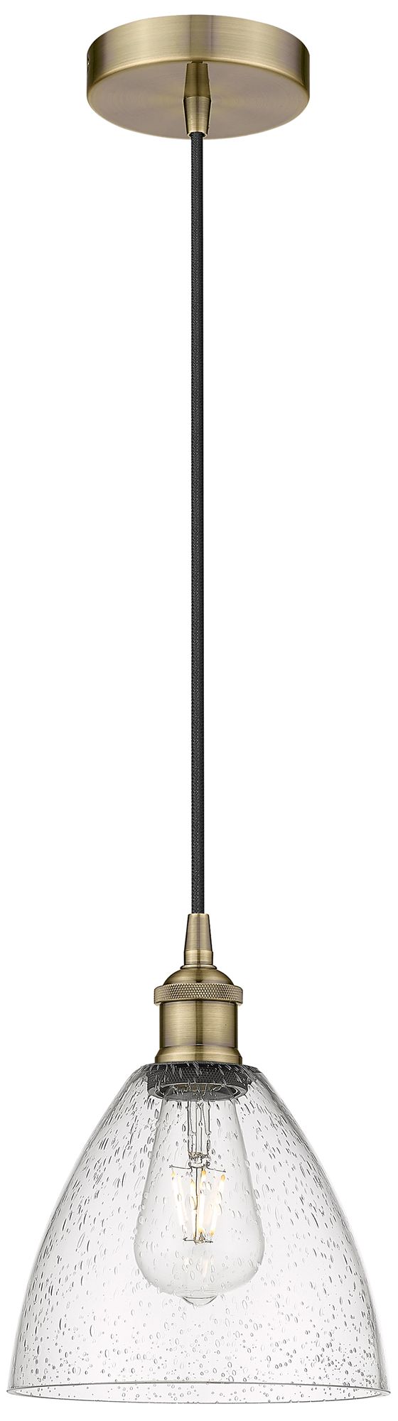 Edison Dome 8" Antique Brass Cord Hung Mini Pendant w/ Seedy Shade