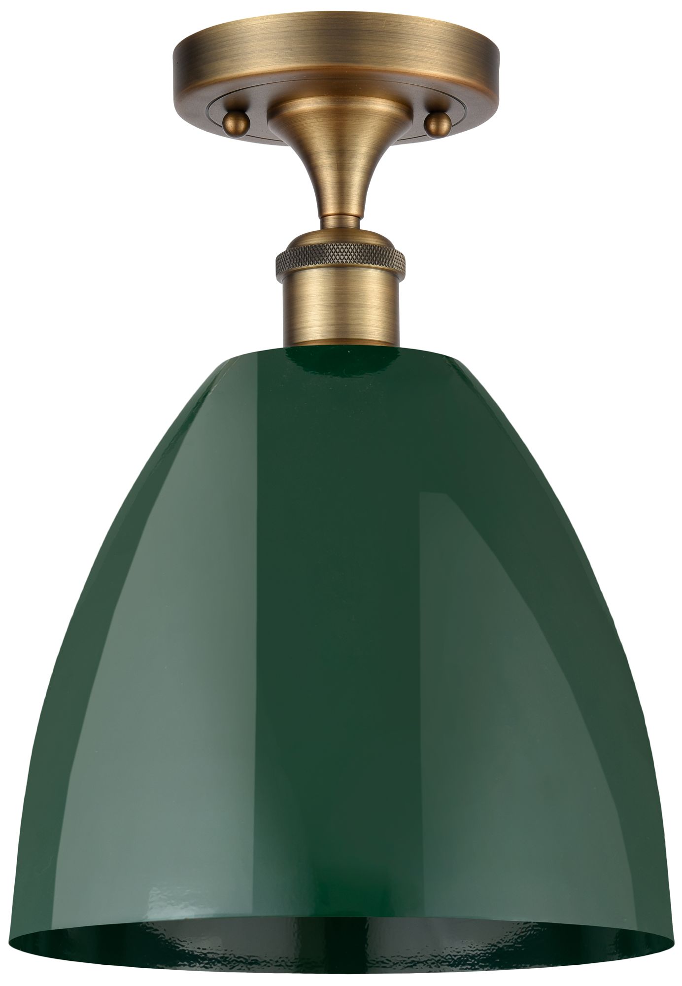 Plymouth Dome 9" Wide Brushed Brass Semi Flush Mount w/ Green Shade