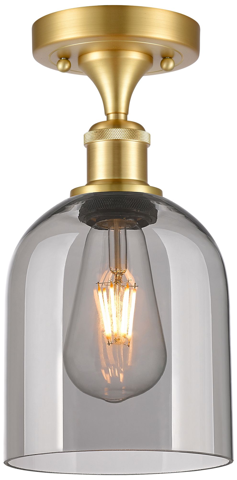 Ballston Bella 5.5" Wide Satin Gold Semi-Flush Mount With Light Smoke