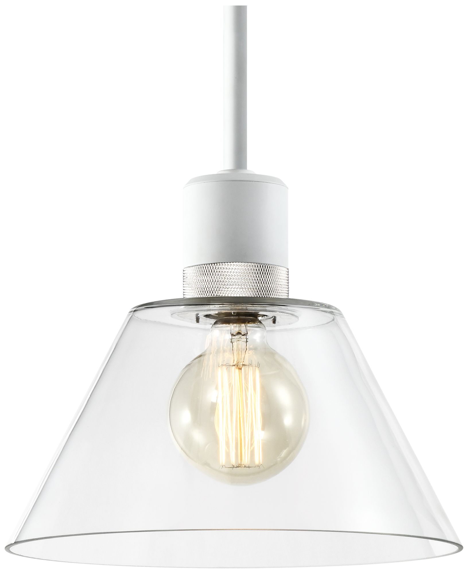 Zigrina 12" E26 Clear Cone Glass Pendant and White with Nickel Metal F