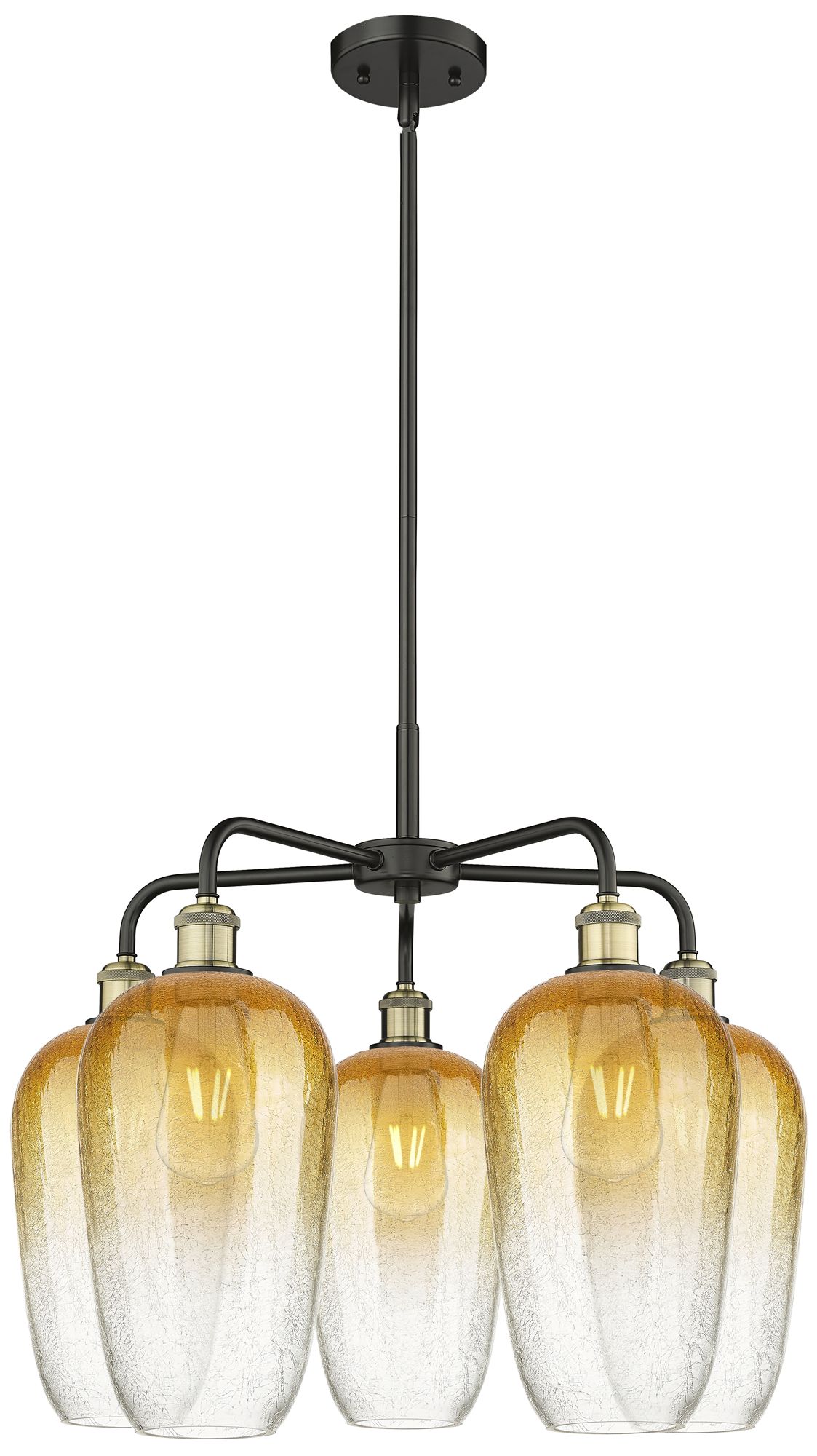 Ballston Brookhaven Flute 26"W 5-Lt Black Brass Chandelier w/ Amber Shade