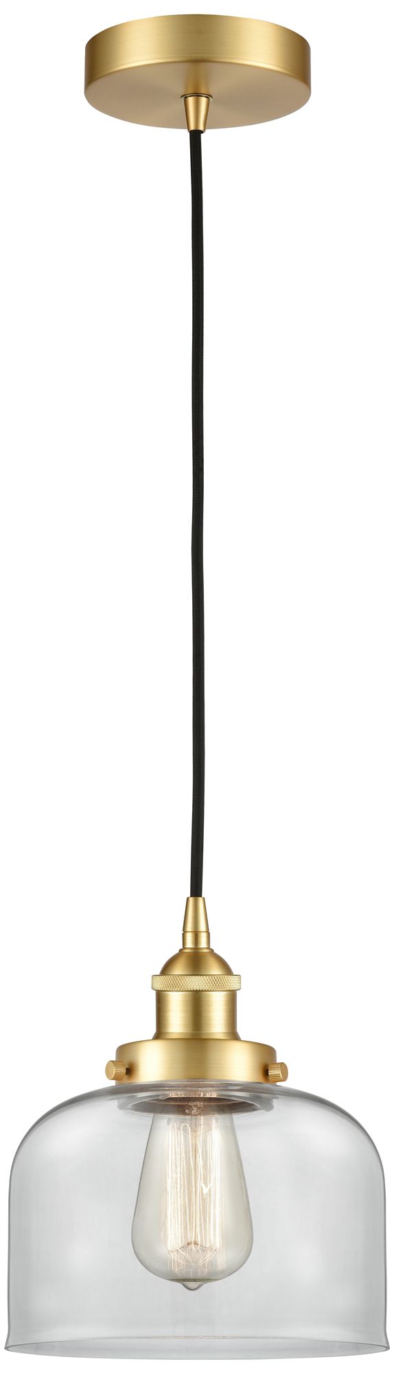 Bell 8" LED Mini Pendant - Satin Gold - Clear Shade
