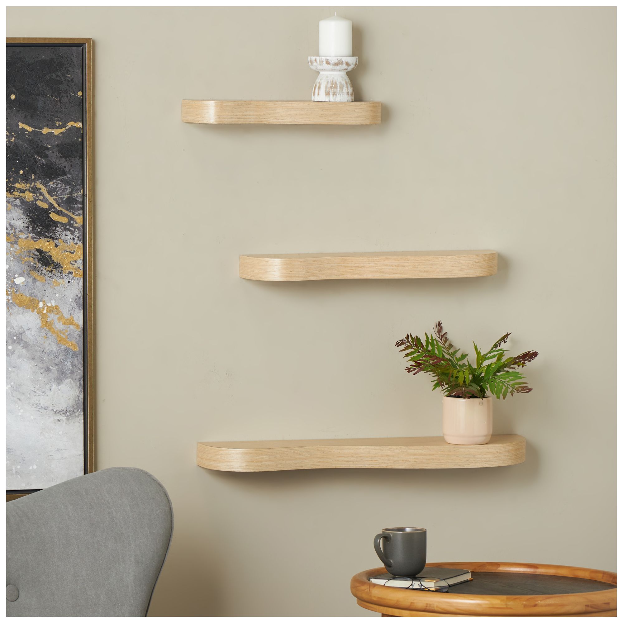 Light Brown Wood Traditional Wall Shelf, S/3 30", 24", 24"W